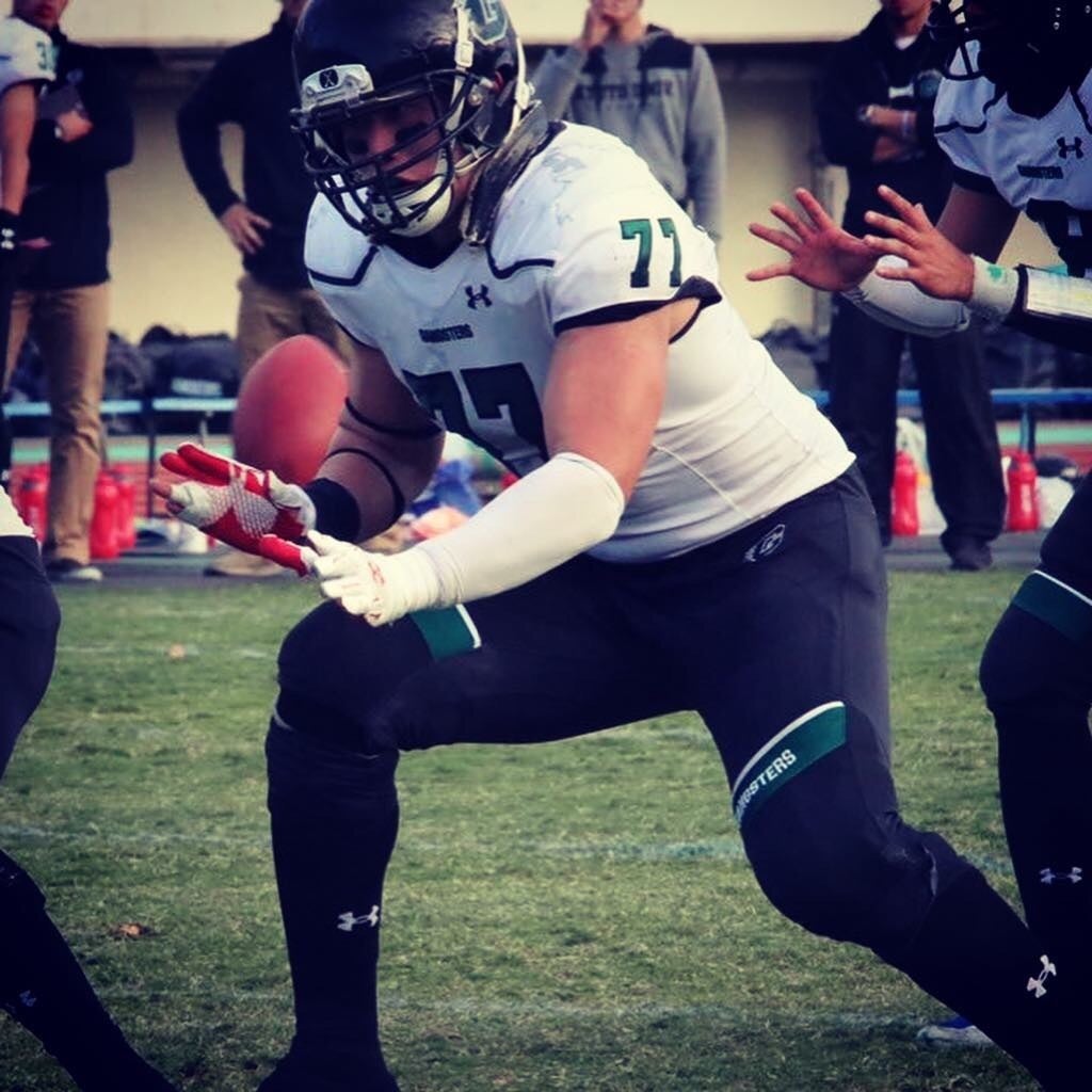 はじめまして。京都大学5回生の町野友哉(まちのともや)です。身長197センチ、体重132キロで、アメリカンフットボールのオフェンスラインというポジションをやっています。昨年まで京都大学アメリカンフットボール部の選手としてプレーし、3、4回生時に関西学生リーグ1部のベストイレブンに選出され、4回生時には大学日本代表にも選出されました。今はコーチという立場でチームに携わりながら、アメリカの最高峰のプロリーグ、NFLを目指し、日々トレーニングや練習に励んでいます。