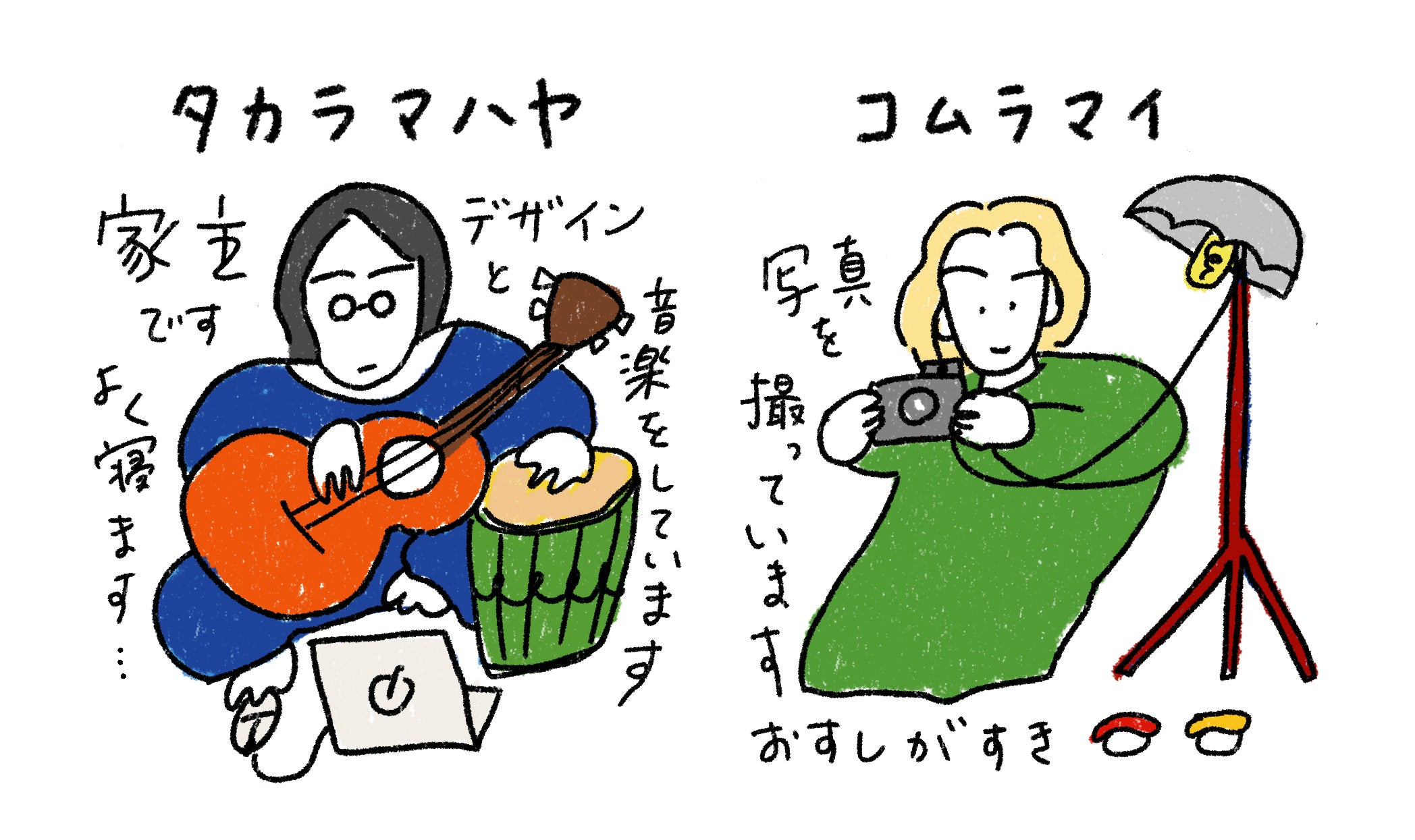 タカラマハヤ(左):デザイン制作・楽曲録音・映像撮影・お名前ロゴを担当します。