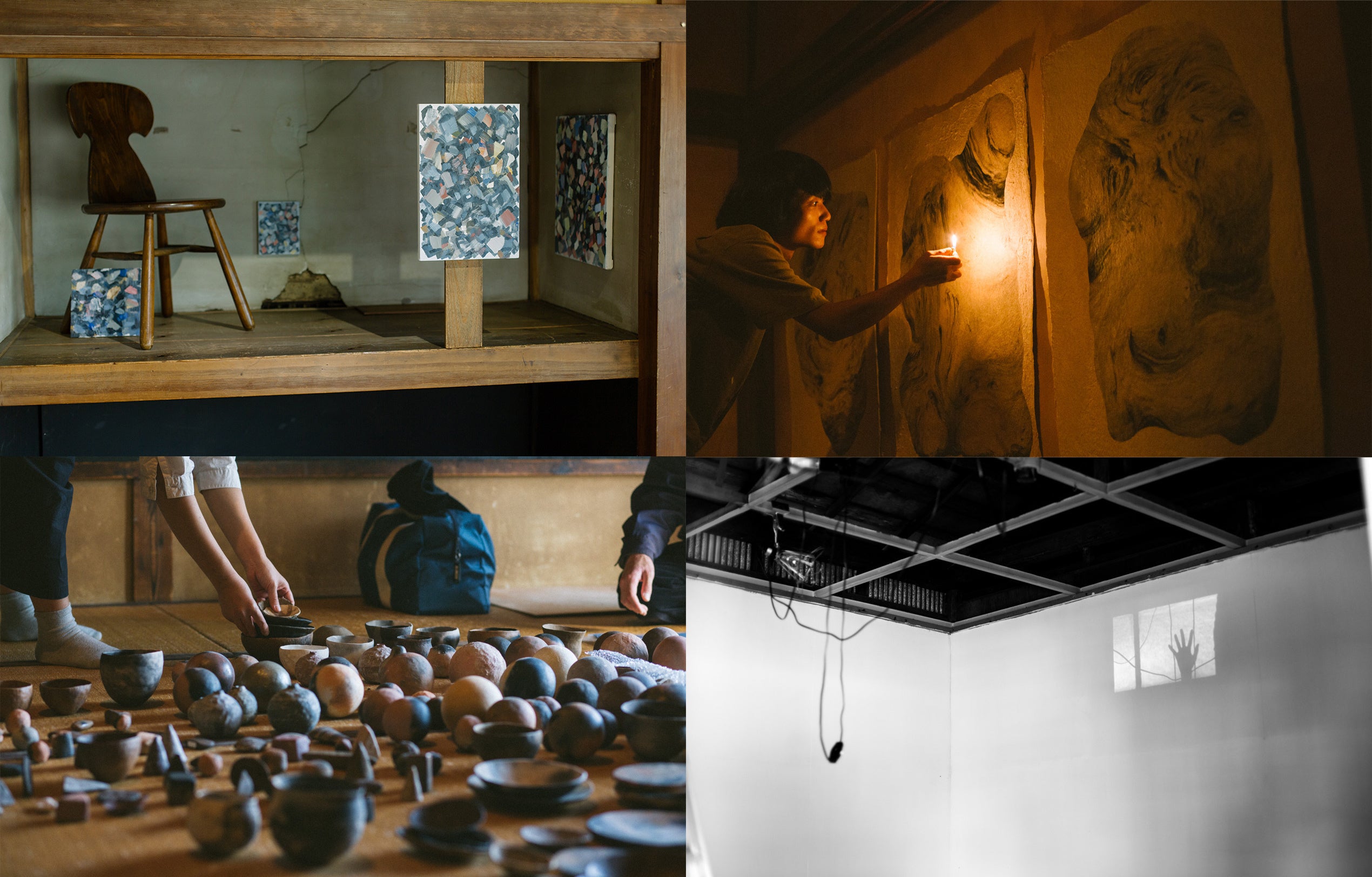 左上から ?meytél「青白い連中」/ 飯島ふるぎ店 / Mountain of Clothes / 山縣俊介「内と外 界隈の祈り」