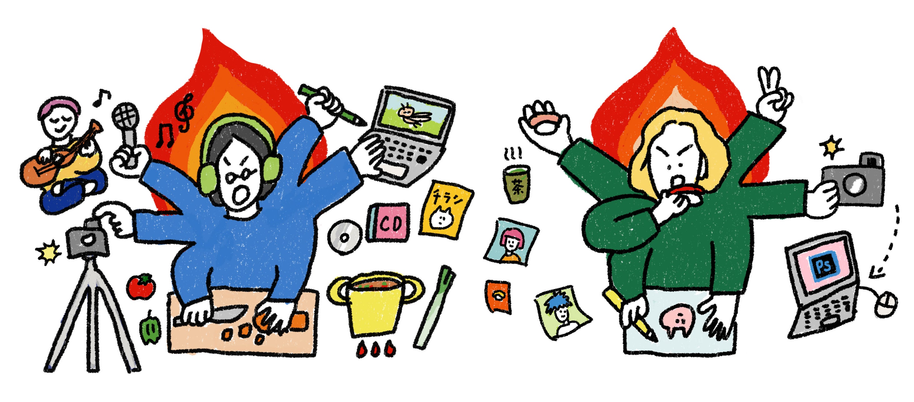 タカラマハヤ(左):デザイン制作・楽曲録音・映像撮影・お名前ロゴを担当します。