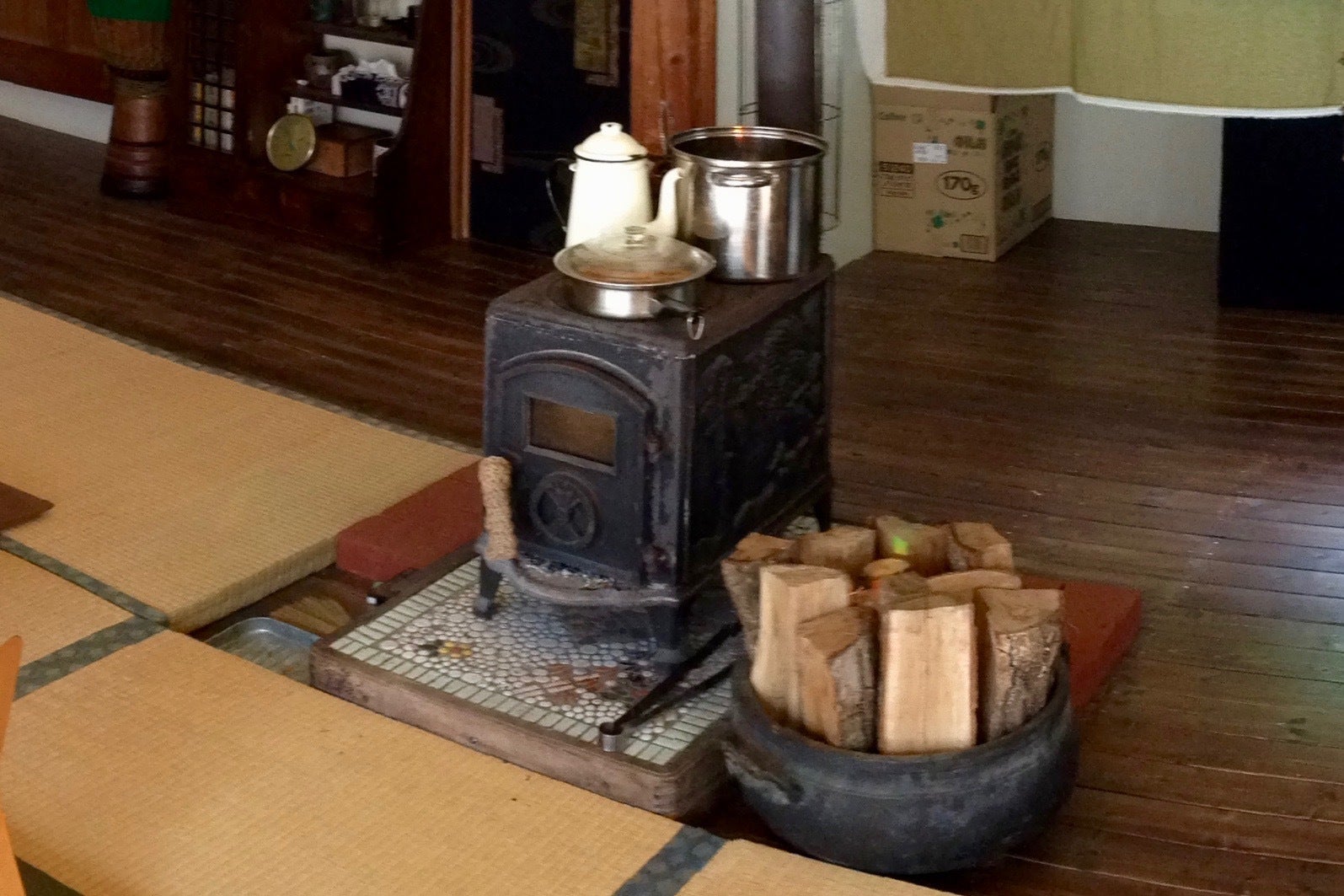 ラウンジでは薪ストーブを焚いて部屋を暖めてお待ちしています。