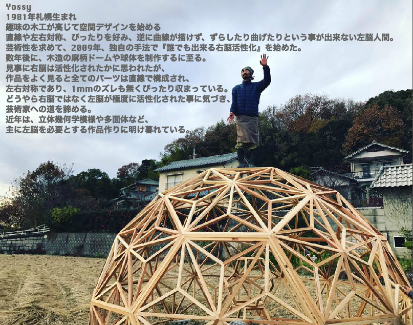 また、この地で得た閃きにより、日本の伝統模様である麻柄アートや、幾何学、多面体の木工制作をしています。