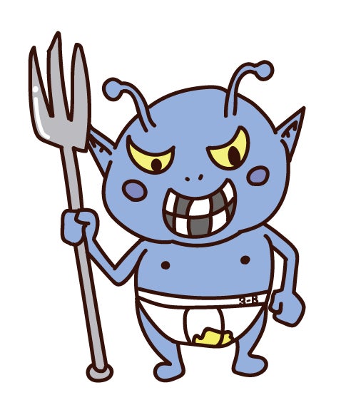 バイキンがどのように生まれたかご紹介します。この絵本ではバイキンはかび達の集まり「かびセブン」の親分です。まず、バイキンの名前。すごく悩みました。虫歯を作っているのはミュータンス菌 という細菌でミュータンという名前にしようかサイキンという名前にしようかかびセブンの親分だからバイキング(王)にしようかとかバイキングだと海賊っていう意味もはいるしややこしいなぁ…。バイキンってウイルス・細菌・カビをひとくくりにした言葉だしとかとかとか色々考えたのちシンプルに「バイキン」という名前が一番子供たちに伝わりやすいという結論になりました。バイキンのデザインですがよく見るとおパンツに「3ーB」という文字が学生時代から同じパンツを使い続けてるんですねぇ…。パンツにお漏らししてます…。きたないですねぇ…。「バイキン」なのに綺麗なおパンツはダメだろと思いこんなデザインにしました。