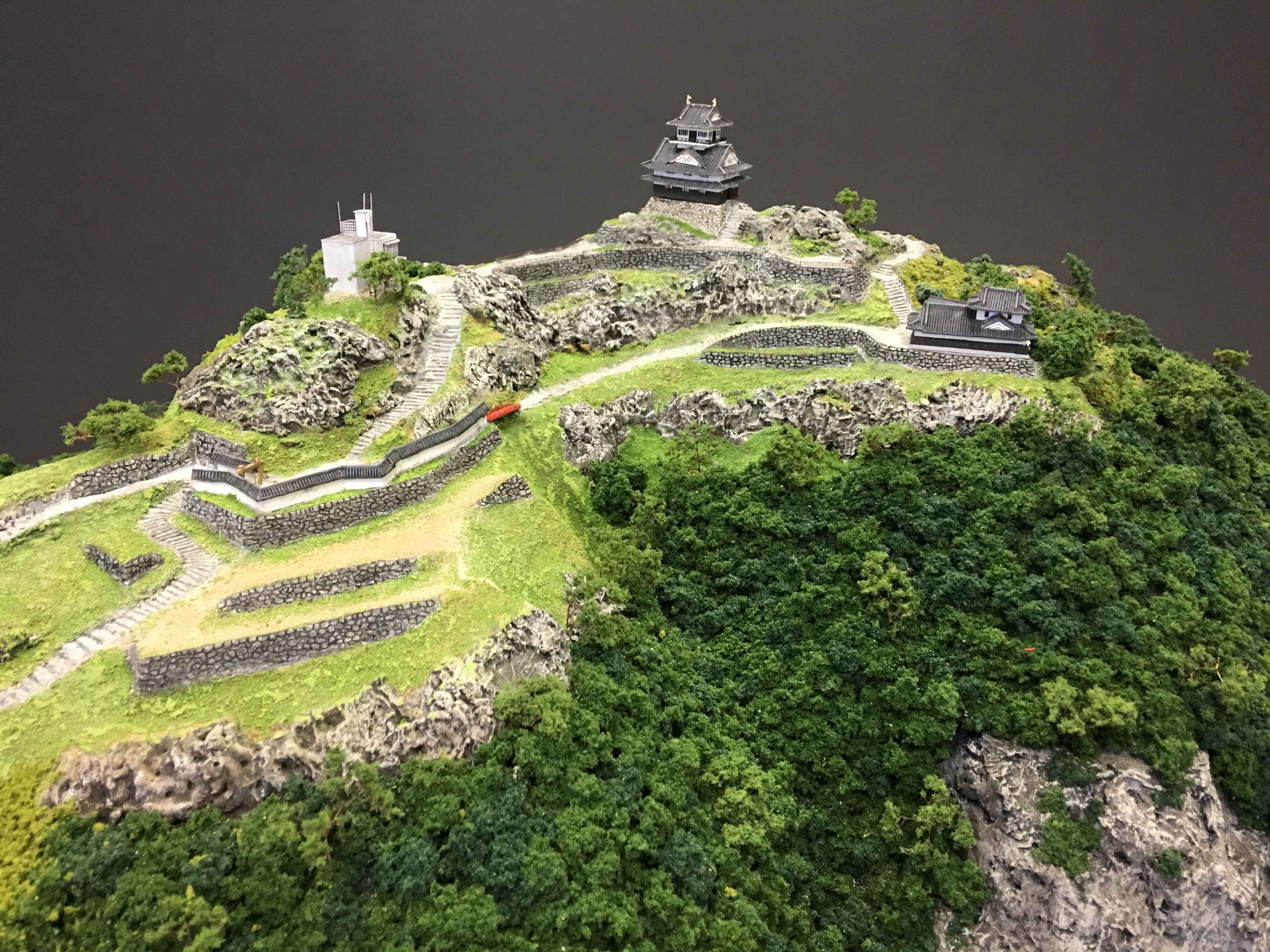 模型は当時の石垣が描かれた絵図や、金華山にレーザーを当てて精密に測量したデータ地形図を参考に製作を行いました。※製作者は城郭模型製作の第一人者島充氏