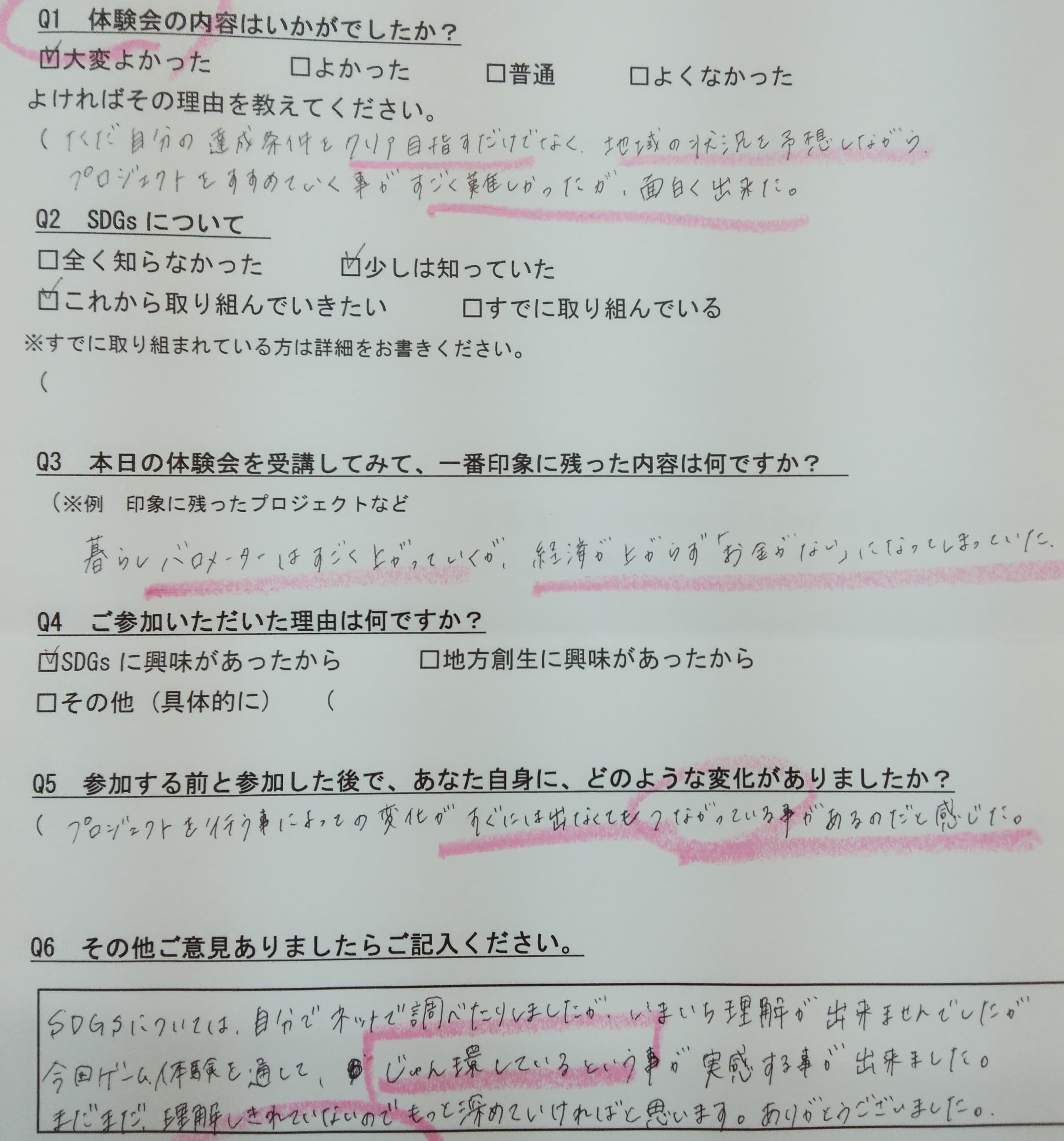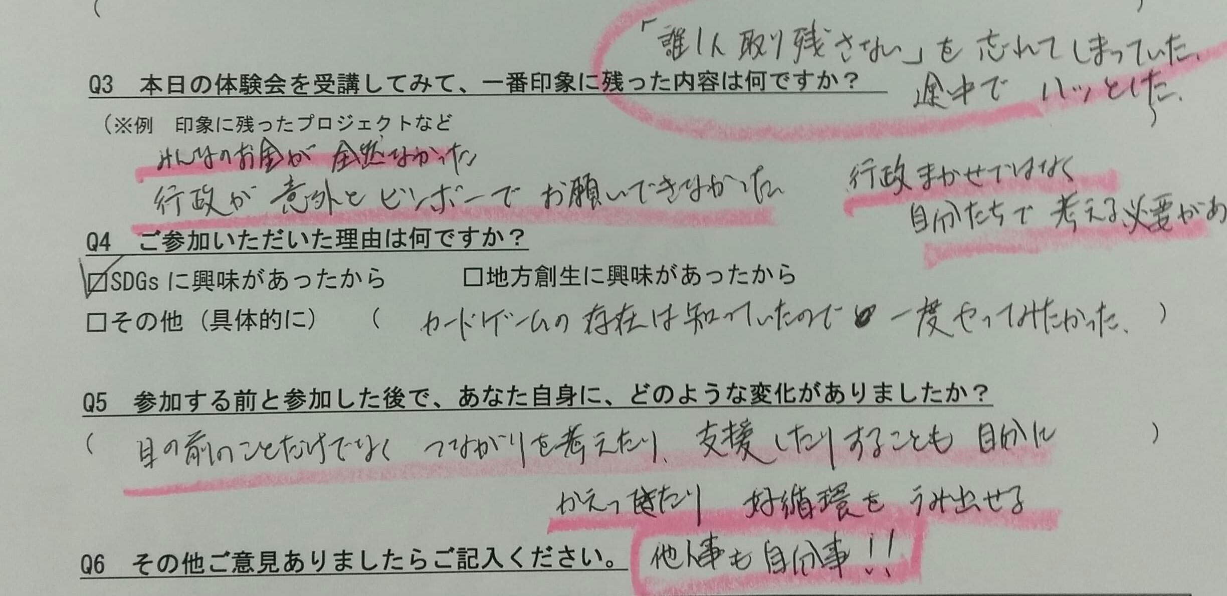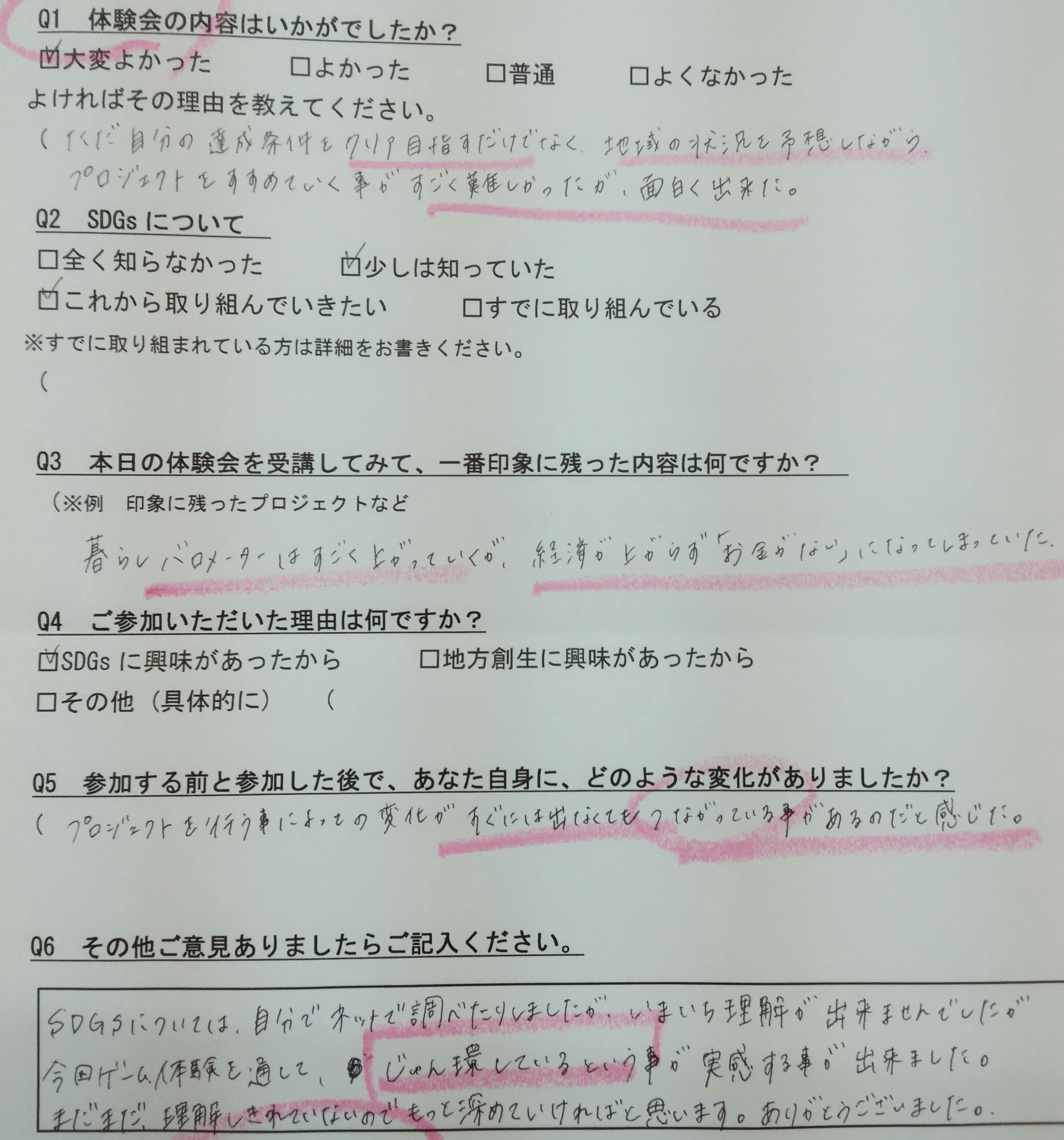ゲームを体験後はSDGsのことが自分とも関係していることを知り、「自分ごと」に落とし込むことができました。