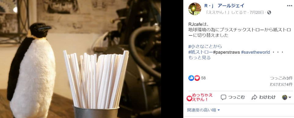 大阪の天満橋のRJカフェさんはプラスチックストローから紙ストローに切り替えされました!