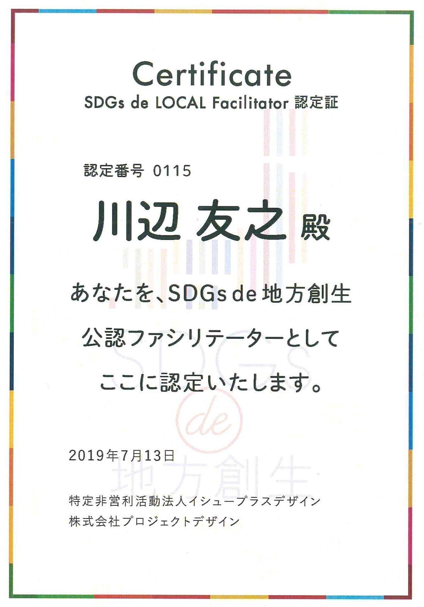 2019年7月にSDGs de 地方創生カードゲームの公認ファシリテーターに認められました。