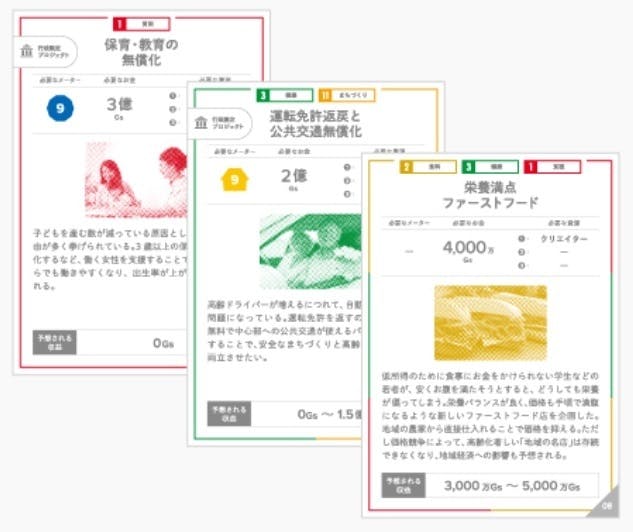 多様なプロジェクトの実行を通じて“行政と市民による協働”を体感できるカードゲームです。