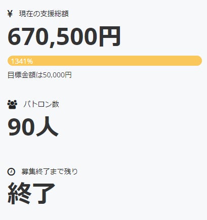 1か月超にわたるプロジェクトはおかげさまで目標金額を大きく上回り、無事終了することができました。