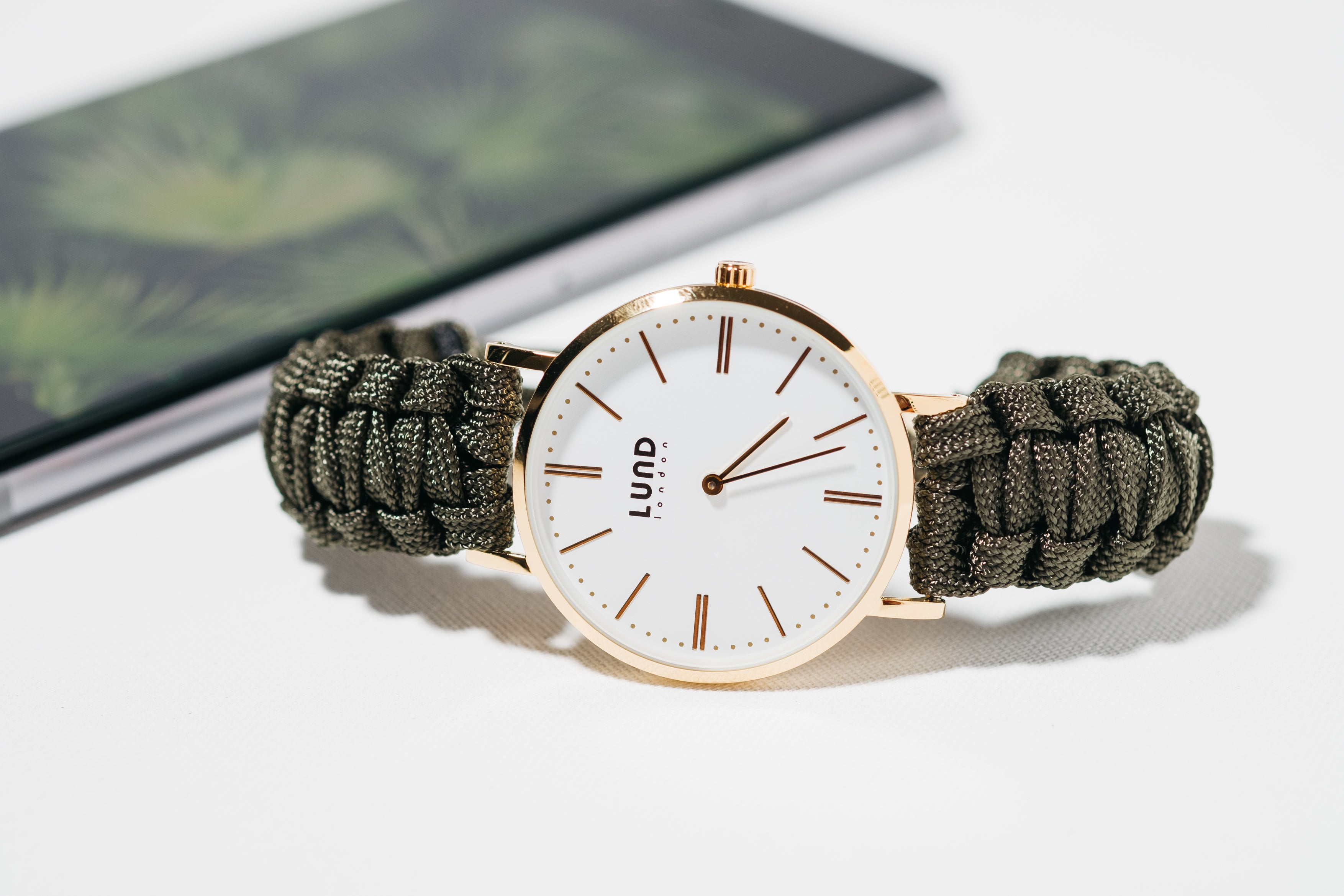 今回ご紹介するLUND WATCHESは、この編み込んだ「パラコード」が、
