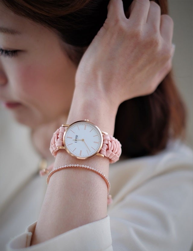 この腕時計は、パラコード素材のストラップベルトを、一つ一つ手作業で、