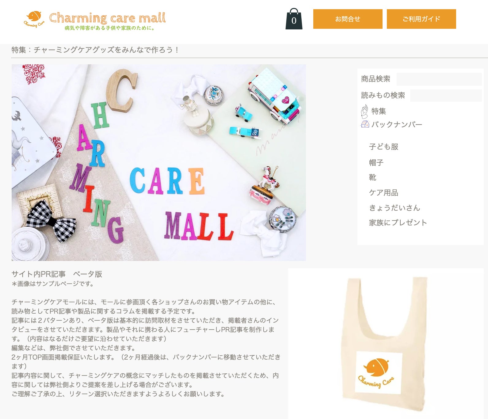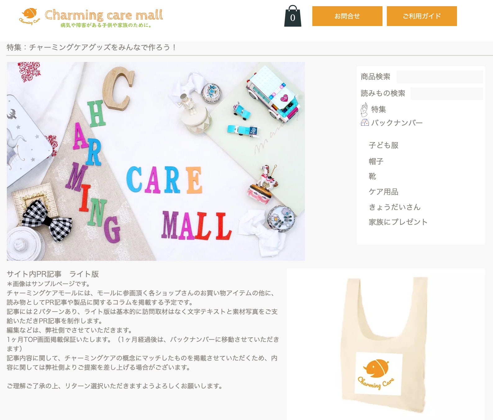 ◆チャーミングケアモールには、モールに参画頂く各ショップさんのお買い物アイテムの他に、読み物としてPR記事や製品に関するコラムを掲載する予定です。