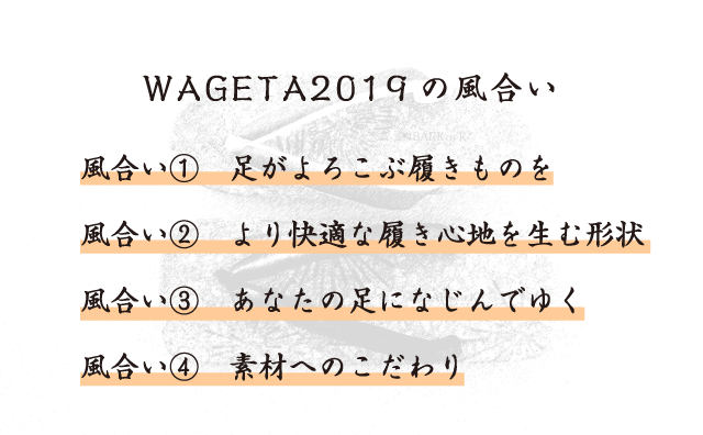そこから「履きやすさ」「素材」「オリジナリティ」を追求した結果、「WAGETA2019」は誕生しました。