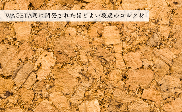 素材となるコルク粒は、世界の最大手のコルクメーカーであるポルトガルのアモリム社から直輸入。地域も限定されている上、植樹して20年が経ってなお、約10年に一度の夏にしか採取できない最高品質の樹皮(B.D.)だけを選りすぐって仕入れています。