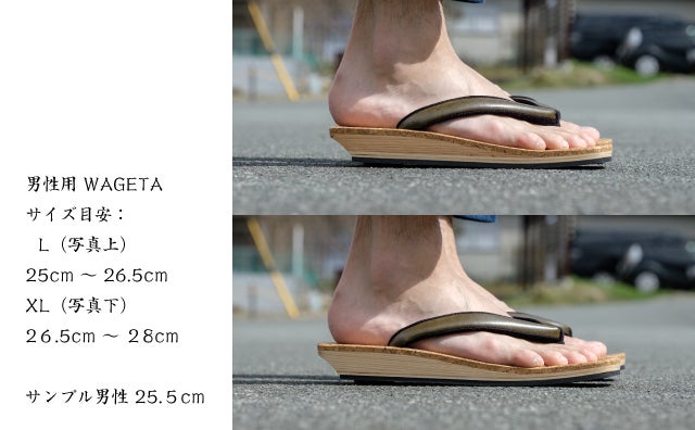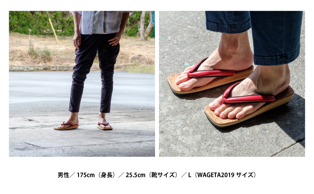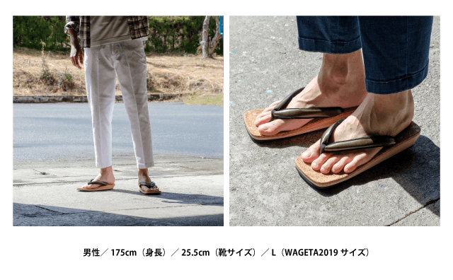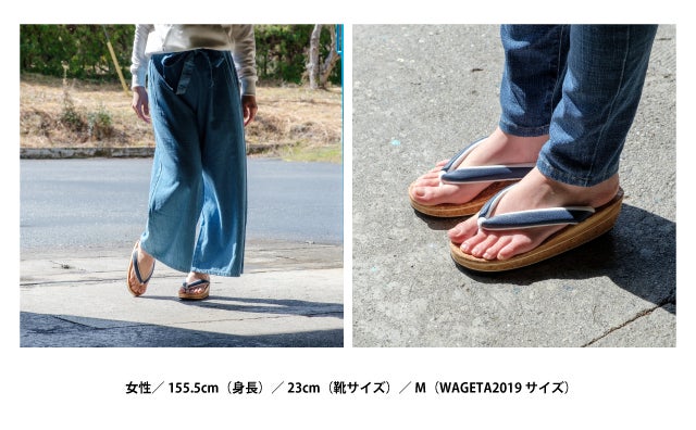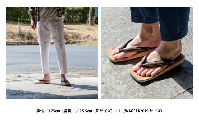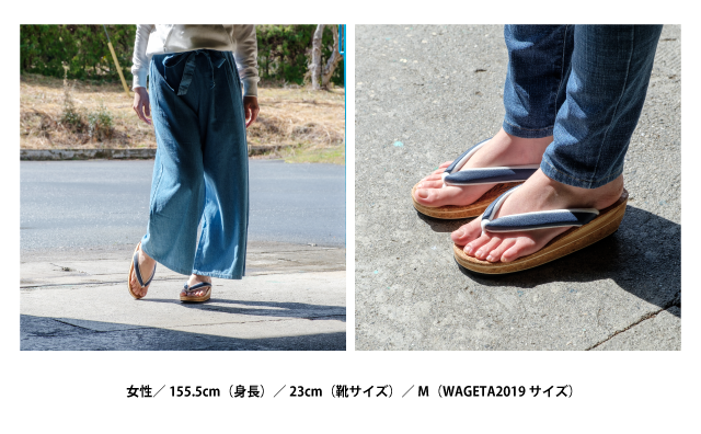 第1弾の「WAGETA(和下駄)」をベースに、「長時間履いてもより疲れにくい、より痛さを感じにくいもの」を目指して改良した「WAGETA2019」の風合いをご紹介します。