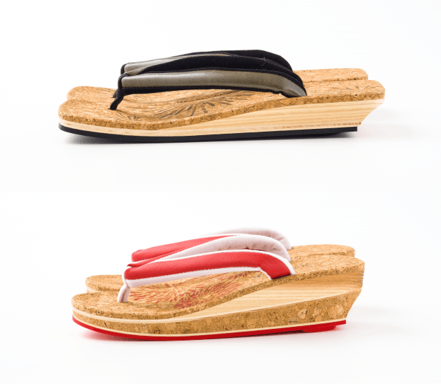 経済の冷え込みや人々の和装離れによる需要の減少に危機感を感じたことをきっかけに、自社ブランドづくりに取り組むことにしたのが、10数年前のこと。縁の下の力持ちとして製品を支えてきたコルクを「目に見える」ようにして、コルクの特性や魅力を知ってもらおう。そんな思いで商品づくりに取り組んできた中で作ったのが、「WAGETA(和下駄)」です。