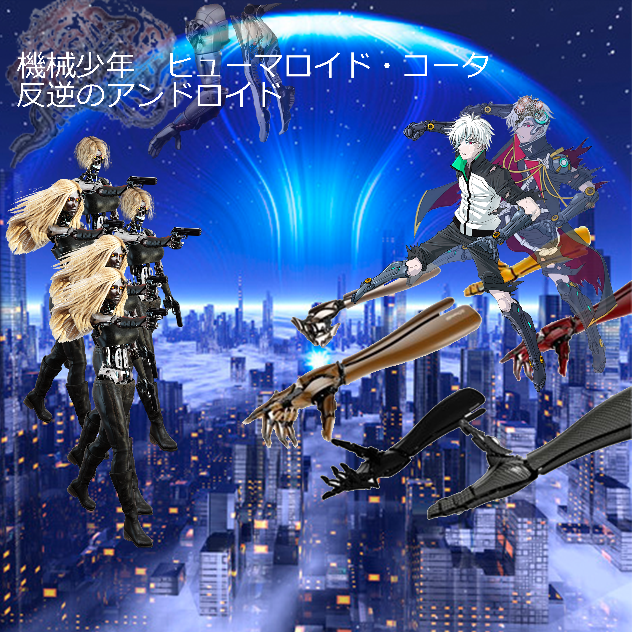 あらすじ:日本を侵略したアンドロイド達に両腕両脚と左脳、そして家族を奪われた少年、機野コータはアンドロイドを発明した日本人発明家、黒岩ルイコウによって機械の義手、機械の義足、機械の左脳に改造され、半機械人間ヒューマロイドとなった。