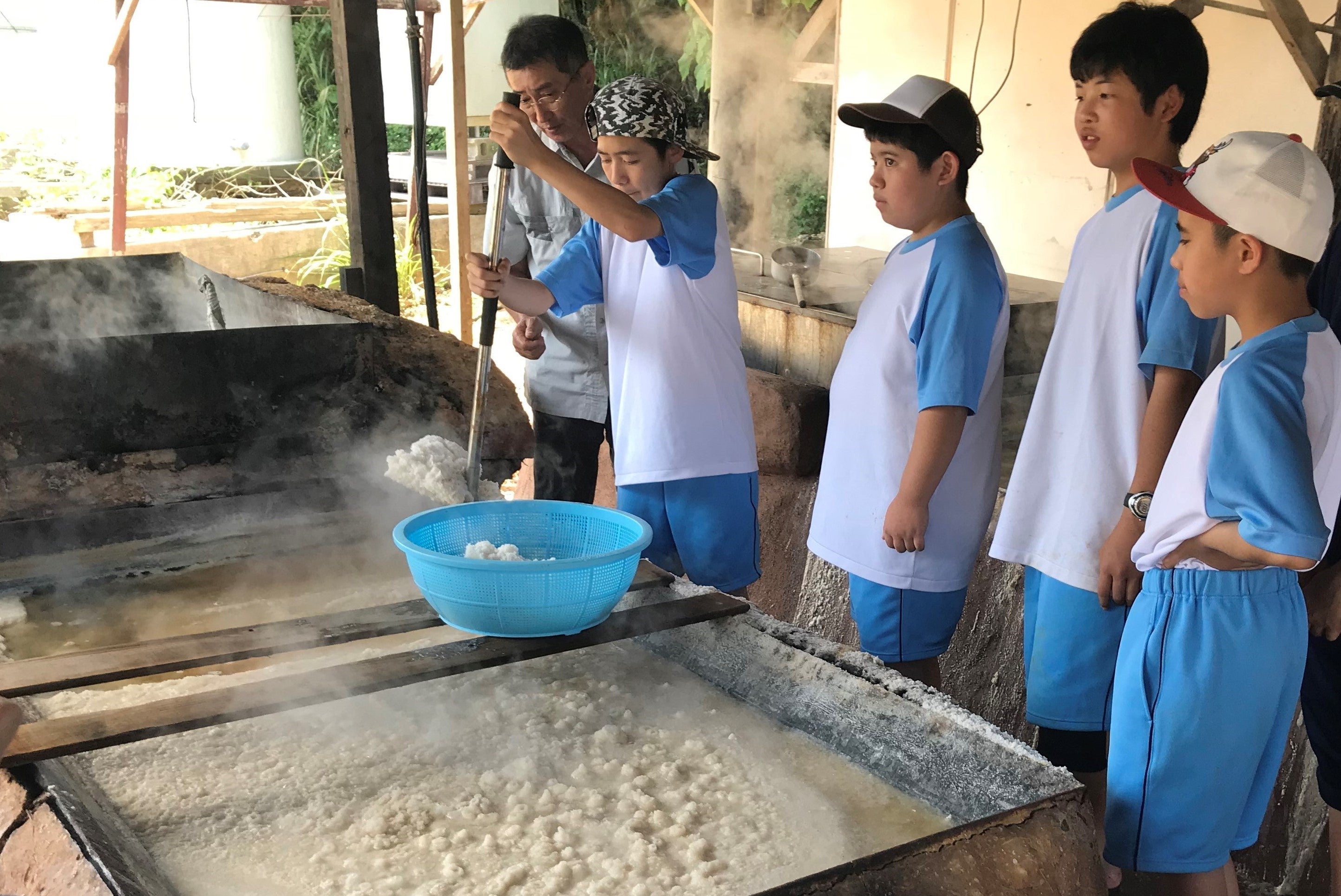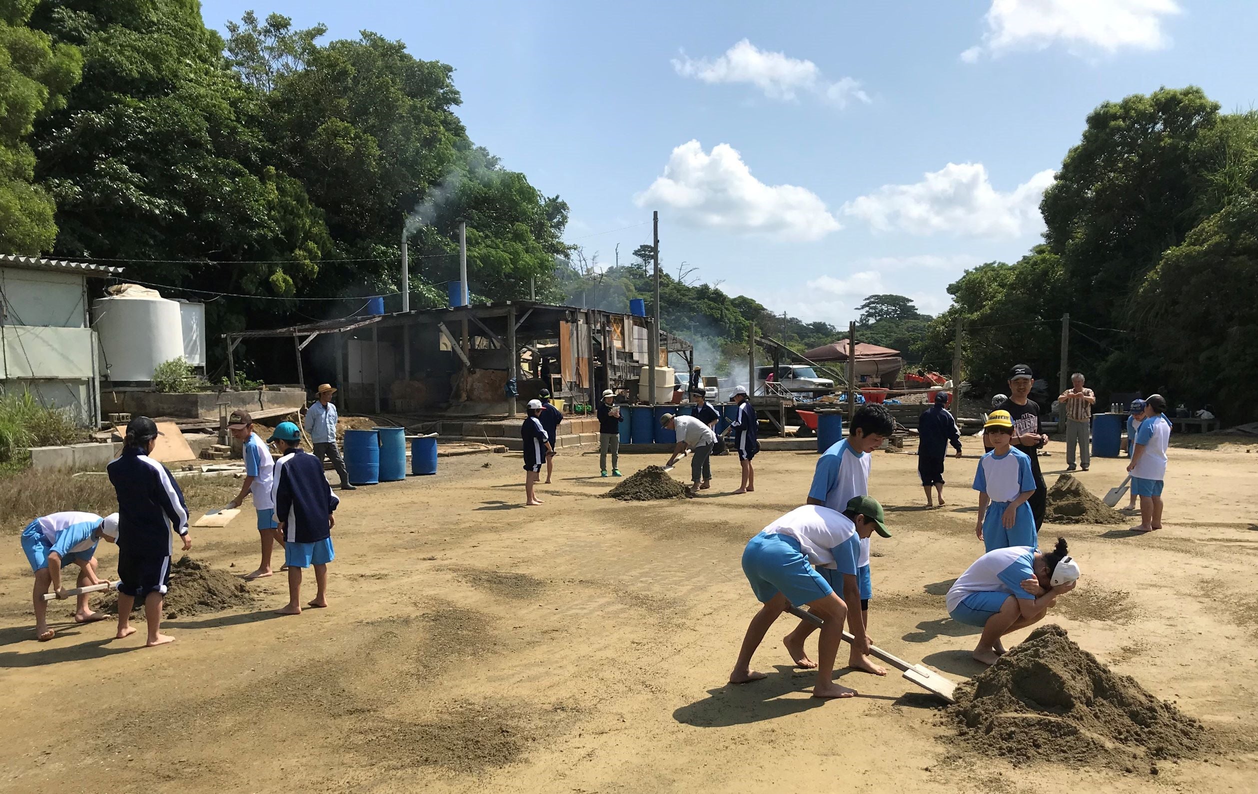 屋我地ひるぎ学園の「美ら島タイム」で行う塩田体験は島の誇りと伝統に触れる貴重な体験です。