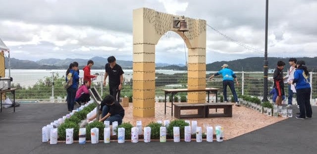 子どもからおじい、おばあまで島民みんなでランタンを作りました。