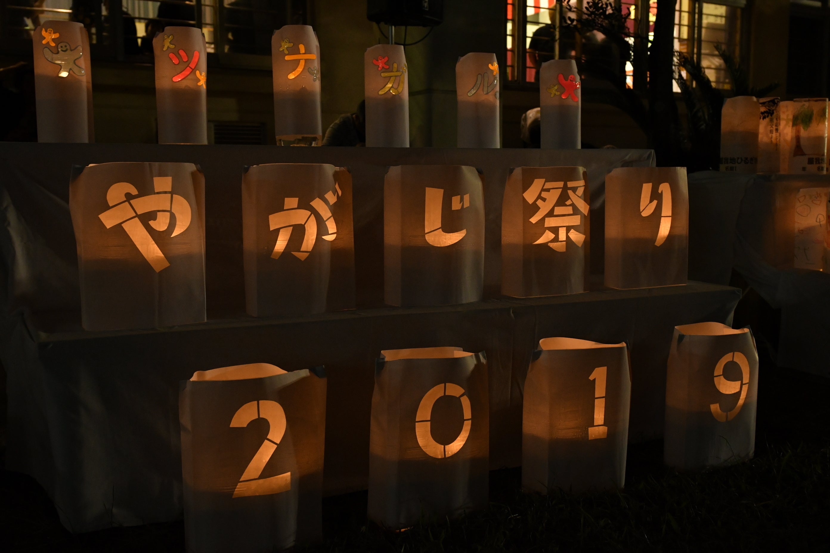 台風の影響で延期となりましたが開催当日は綺麗に晴れ、真新しい支所を会場に、色々な催しをしました。島の人口と同じ1500個のランタンで屋我地支所を飾ろうと地域の方々、聖ルカ保育園の幼児、屋我地ひるぎ学園の児童・生徒・先生。