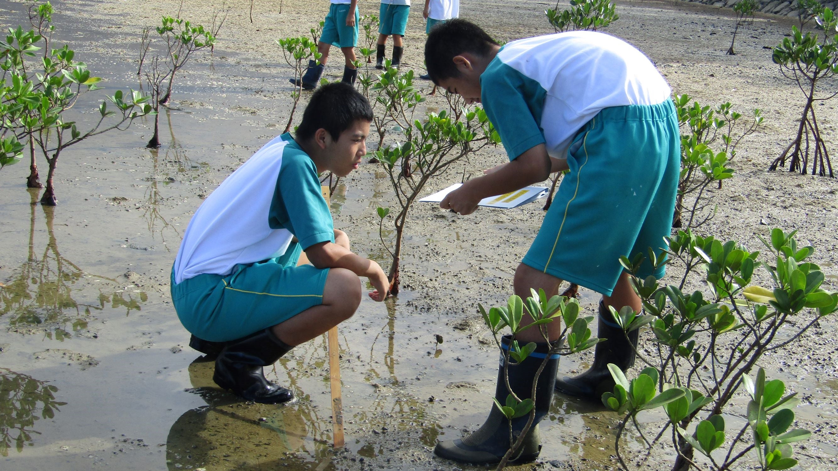 『屋我地ひるぎ学園』は、小学校1年生からの「英語教育」やタブレットなどのIT技術をいち早く導入した授業、「美ら島タイム」という地域の人たちの協力のもと屋我地島の恵まれた地域資源を活用した学習などを行っています。