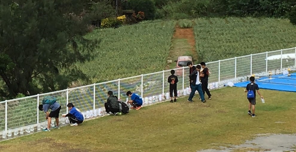 子どもからおじい、おばあまで島民みんなでランタンを作りました。
