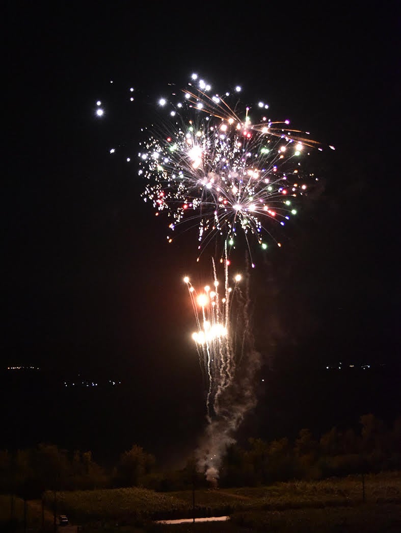 雨のために、無理かともおもわれましたが、花火の打ち上げにあわせたかのように雨が上がり、みんなで花火を見上げました。