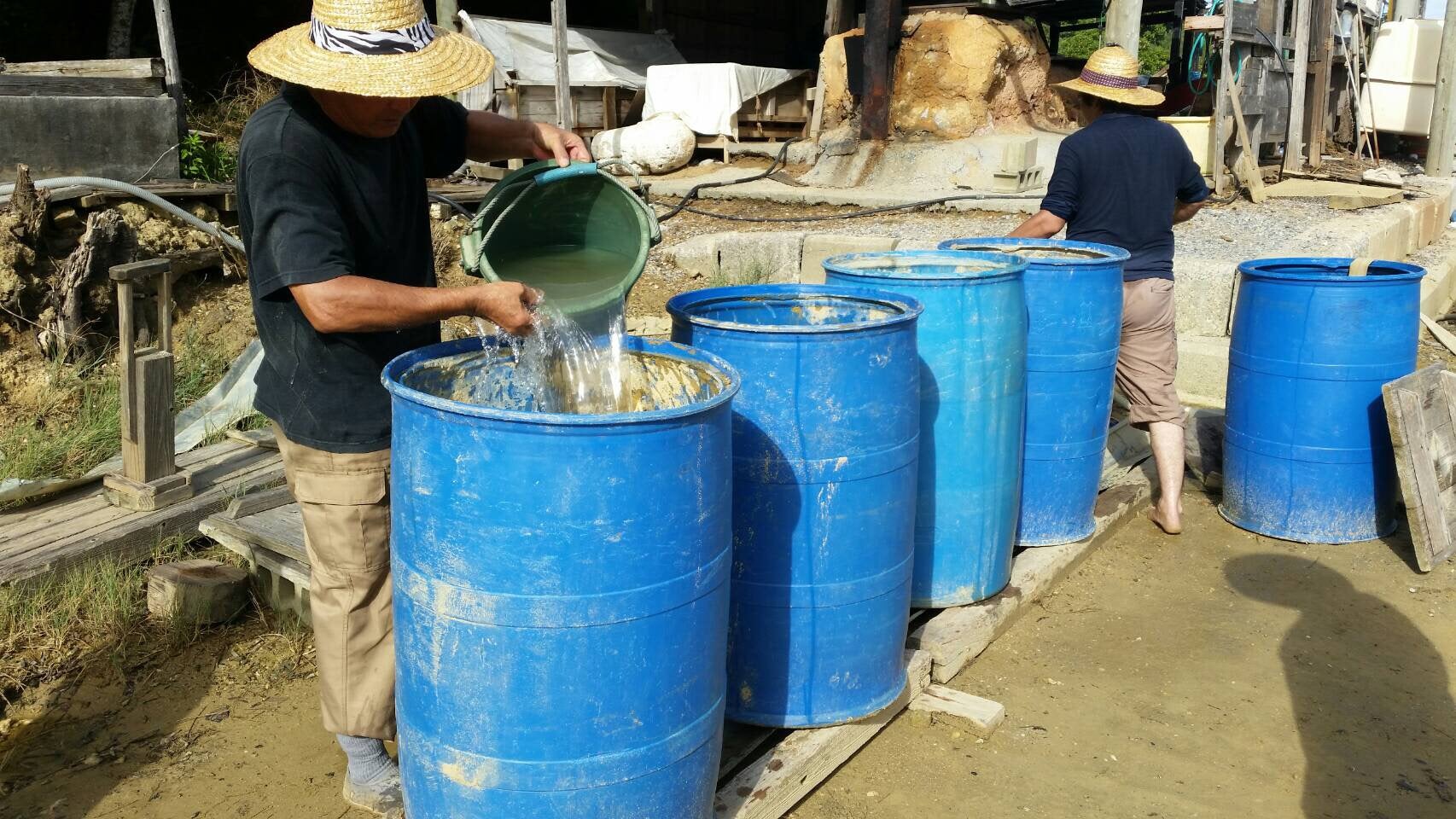 第六工程:カシー(粘性砂)の濾過作業でかん水を採取