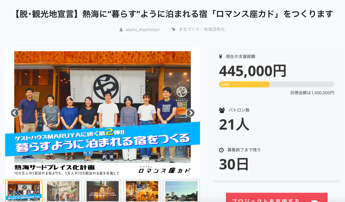 今回のこのクラウドファンディング、私たちmachimoriは、やっぱり熱海にこだわりやっていきます、ということの宣言でもありました。たしかにこれまでの取り組みによって熱海銀座は大きく変わってきました。でも、熱海のまちなか全体はまだまだ。