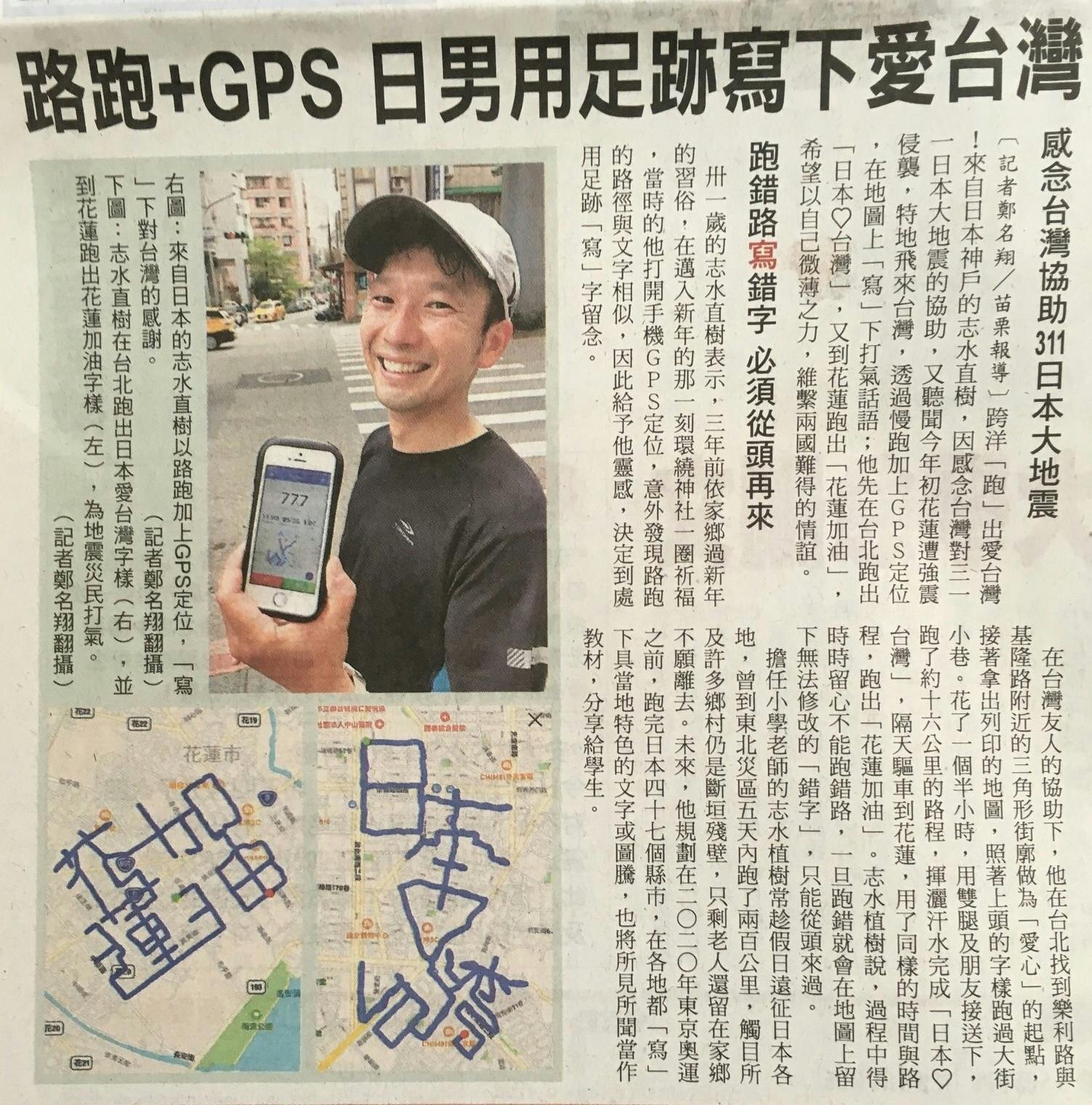 ・2018.5 台湾花蓮市での大地震を受け、ゴールデンウィークを使い、応援メッセージ「日本愛台湾」「花蓮加油」を描きに行く。現地の多数のメディアに取り上げられる。