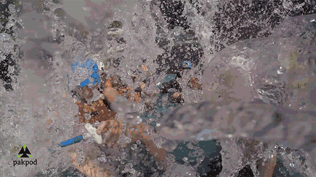 ※水の流れが強い場合Pakpodにおもり(画像で使用されているリングのおもりは約2キロ)をのせると水流で流されるのを防止できます。流れが緩やかな場所ではPakpodが水に流される心配はありません。