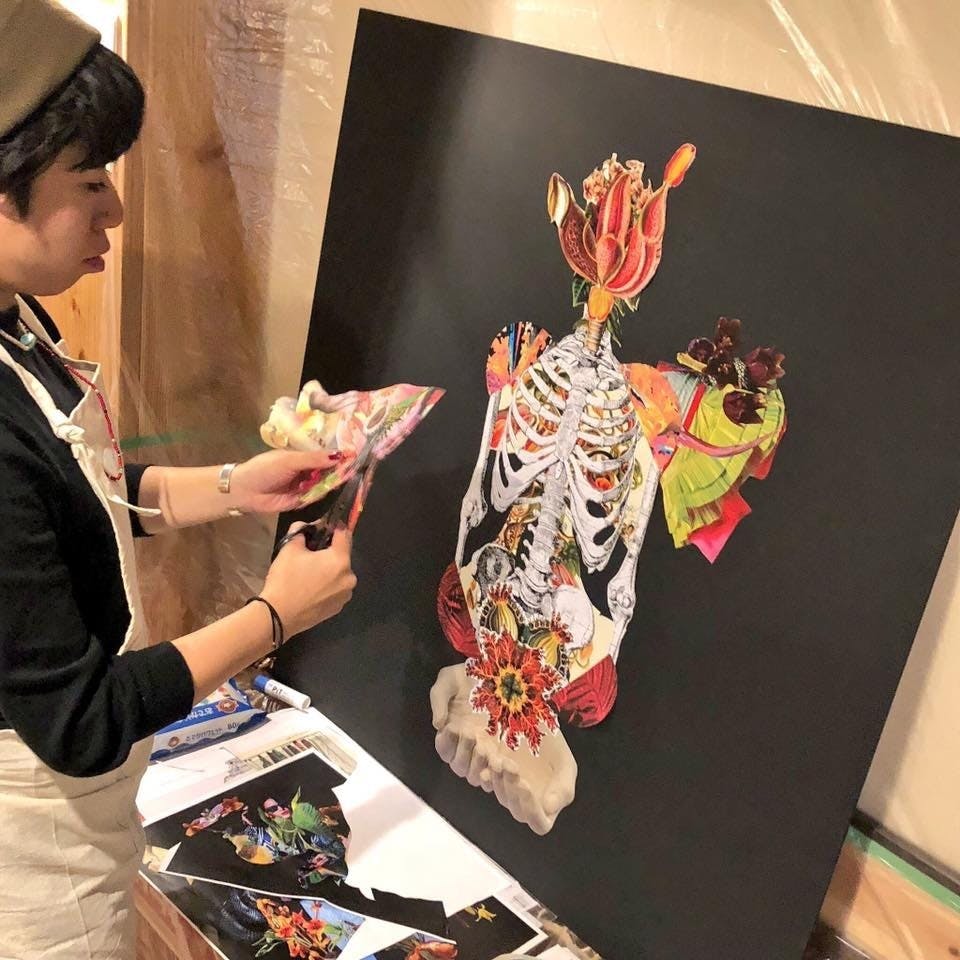 初めて勇気を出して個展をした時にコラージュ表現をするようになり、そこから表現を深め今現在コラージュアーティストになりました。
