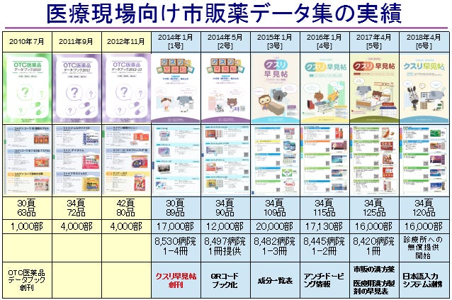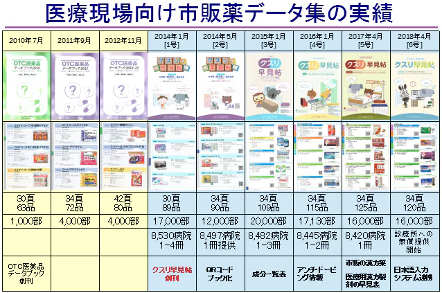 2010年からの4年間で、現在の市販薬データ集のテスト版『OTC医薬品データブック』を制作し、一部の医師や薬剤師に実際に使ってもらいました。そのフィードバックをもとに、2014年1月に医療現場向けの市販薬データ集『クスリ早見帖』を創刊しました。