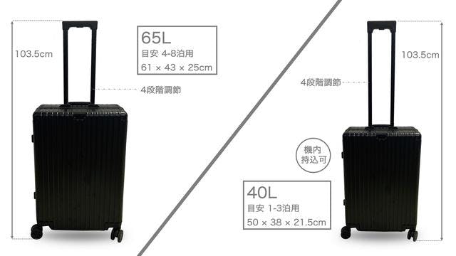 【機内持込可能な40Lサイズ】と、【長期旅行用の65Lサイズ】をご用意いたしました。