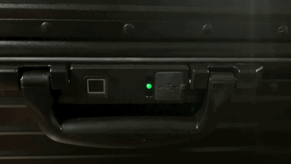 指紋キー用の小型バッテリーは、通常は本体内部に搭載して使用しますが、バッテリーを搭載したまま手荷物を航空会社に預けることはできません。BLACK INFINITYを機内に持ち込まないで航空会社に預ける場合は、バッテリーを取り外します。解鍵の際は外側の USB ファンクションに取り外したバッテリーを差し込んで指紋キーを解錠することができます。万が一、純正バッテリーを紛失してしまった場合でも、マイクロUSBポートが外側にございますので、モバイルバッテリー等から電源を供給して解錠することが可能です。