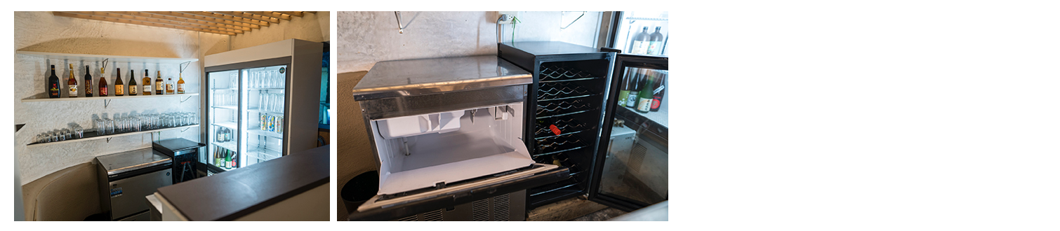 店舗にはビールやワインなどのドリンクがたんまり入った専用の冷蔵庫/セラーを設置しています。冷蔵庫から好きな時にとり放題、外で飲むよりかなりお得に購入できます。もちろん持ち込みもOKですが、わざわざ事前に準備したり買い出しにいく必要がありません。