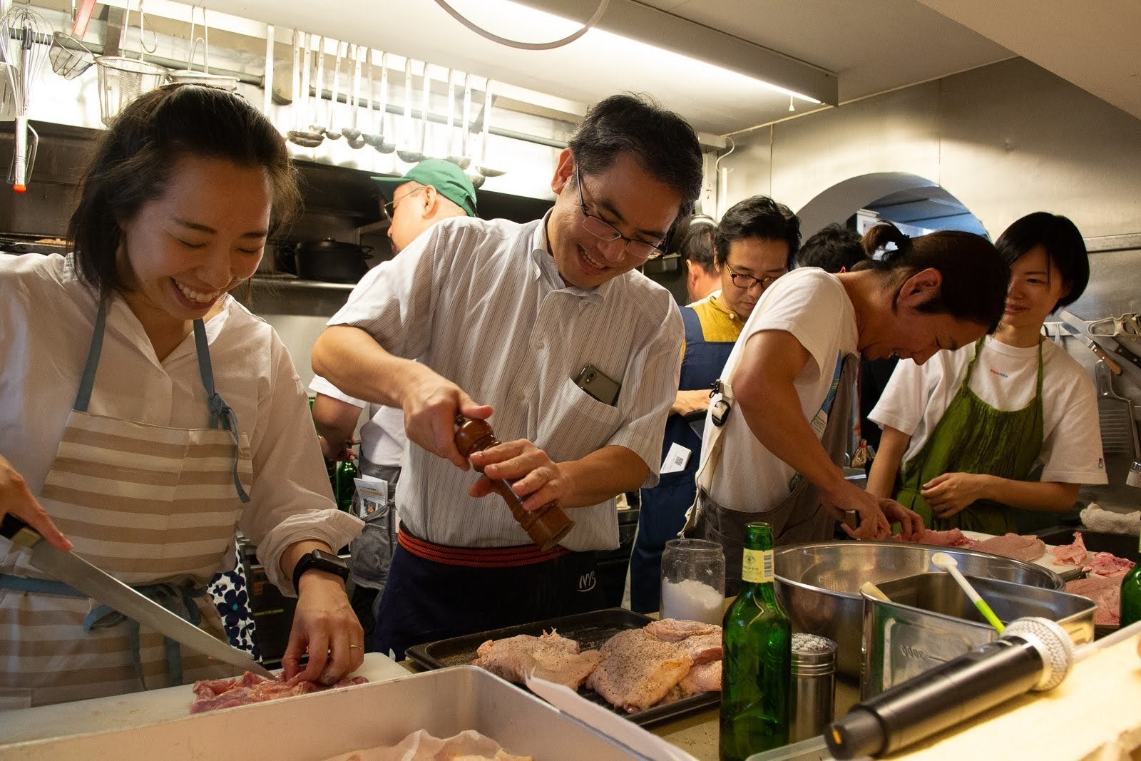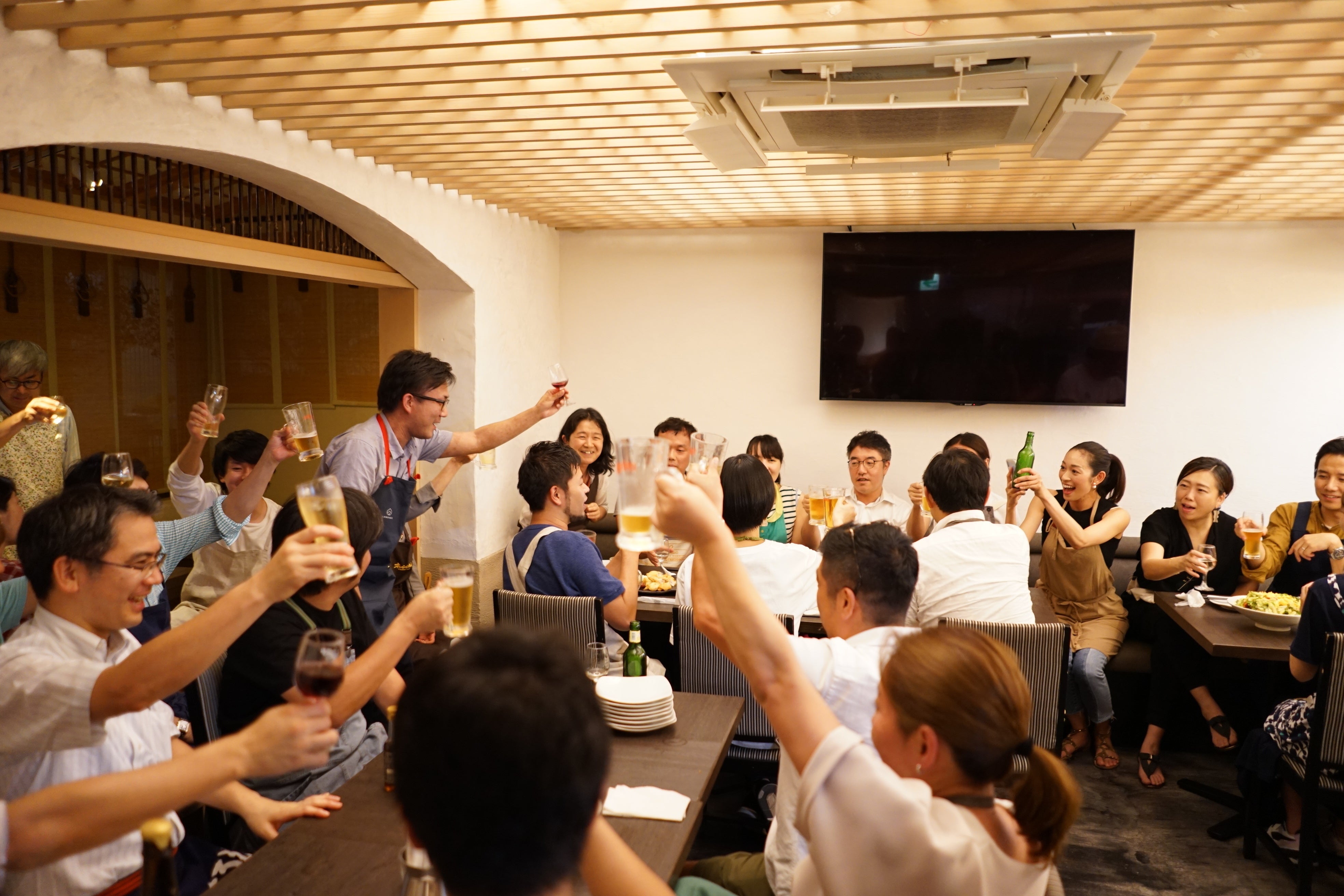 料理がおわったら着座してもう一度乾杯。料理という工程をふむだけで皆さんホント年齢も職業もすべてを超えて仲良くなること。。もうこれは魔法だと思います。