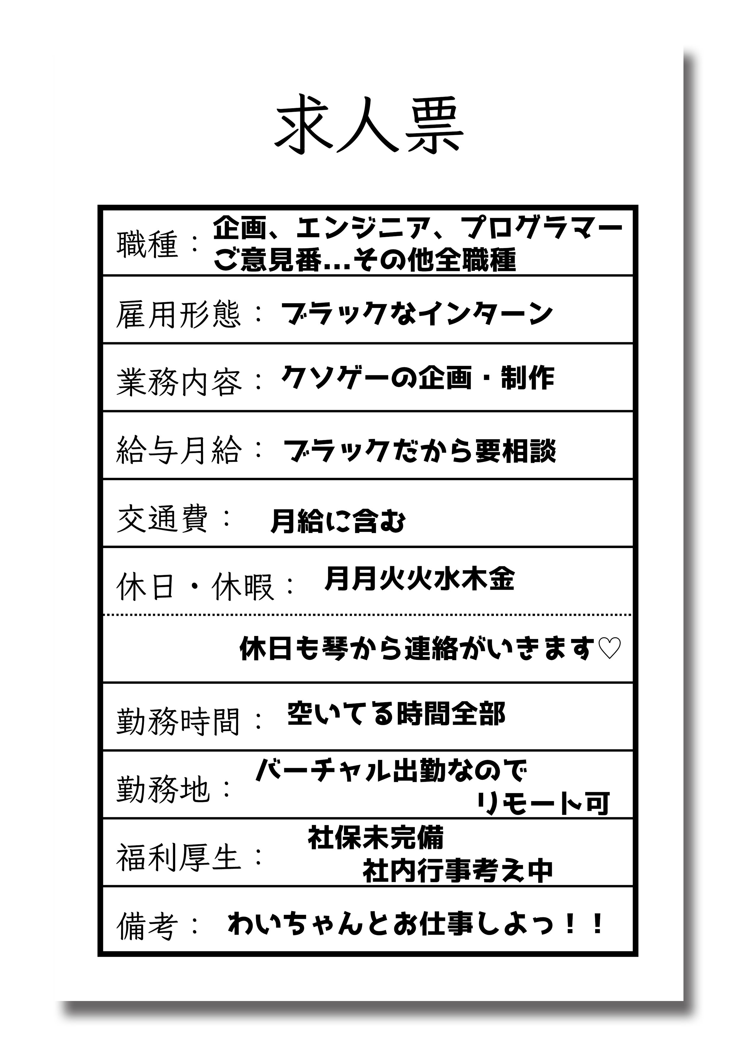 ・2週間インターン参加券 ~みゆりと一緒にクソゲーを作ろう!~
