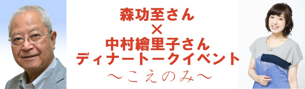 森功至さんと、声優の中村繪里子さんとお客様がおいしい季節のお料理とお酒を楽しみながら、アニメや声優のお仕事の話を中心に、まったりと2人のお話を楽しんでいただくイベントです。