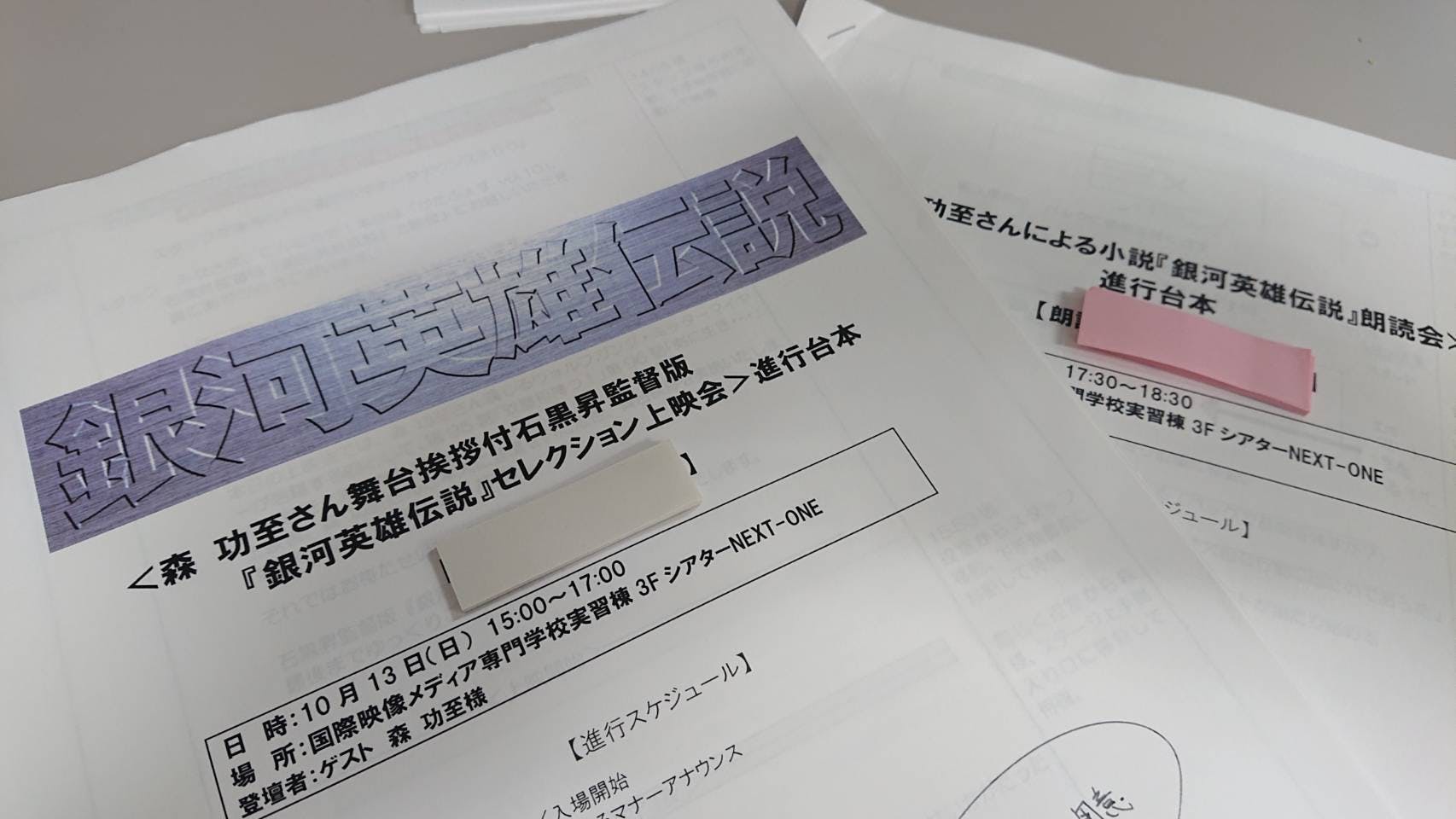 2019/10/01 22:56こんにちは!プロダクション I.G 「がたふぇす」イベント実行チームです。このたびは本プロジェクトにご支援をいただきまして誠にありがとうございます。今日から暦は10月となり、「がたふぇす」開催まで残り2週間を切りました!本日は森さんと2回目の打ち合わせをしてきましたので、その模様をご報告できればと思います。場所はおなじみの都内某所の喫茶店です。2回目の打ち合わせともなるとだいぶ森さんと打ち解けてきたかなと感じるスタッフ。打ち合わせ現場に到着すると、森さんはお昼がまだとのことだったので、おいしそうなパンケーキをたのしんでいらっしゃいました。(写真はありませんよ。。)サインをたくさん書いていただきました!本日の打ち合わせでは、まずパトロンのみなさまのリターンとして色紙や小説本にサインをいただきました!森さんに実際に書いていただいた色紙や小説本がみなさまのお手元に渡ります。実は我々がよくみる色紙の白い部分は「裏」で「表」は装飾の入っている面なんだとか。ある役者さんがサインをする時に謙遜して裏側に書き始めたことからその作法が広まったという説もあるそう。と、こんな小話も教えていただきながらリターン用のサインをしていただきました。ありがとうございます!森さんのサイン光景ですイベントの進行についてすりあわせです本日は森さんに実際にご登壇いただく、「小説 銀河英雄伝説 朗読会」「石黒昇監督版 銀河英雄伝説 上映会」の進行台本を元に打ち合わせを行いました。朗読会の打ち合わせでは、入場の仕方から、演出の方法まで。森さんの朗読を引き立たせる為にはどうすればよいか、互いにディスカッションしながら細かいところを詰めていきます。上映会の打ち合わせでは、本番で森さんの魅力的なトークを引き出す為に森さんのことを色々伺っていきました。森さんは話の引き出しが多い方で、話が逸れてしまう事もしばしば。笑ですが、きっと当日は面白いお話が聴けると思います!話が脱線してこの笑顔。素晴らしいです。。もうすぐがたふぇす!「がたふぇす」がよいイベントとなるよう、ぎりぎりまでスタッフはがんばる所存です。引き続きなにとぞよろしくお願いいたします! もっと見る森さんと「がたふぇす」の打ち合わせをしました!