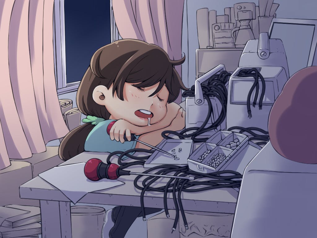 医療機器修理中に眠る臨子ちゃん