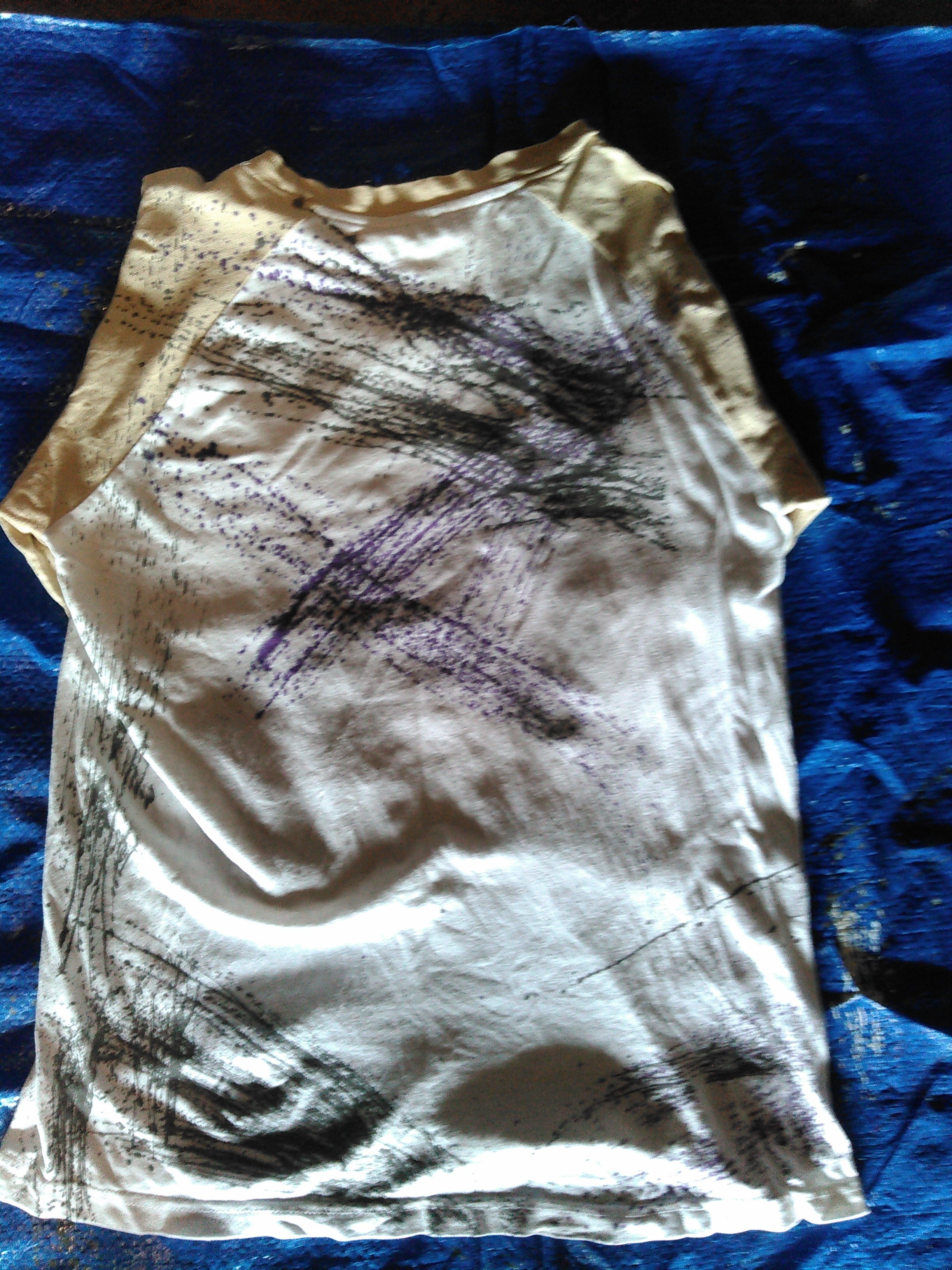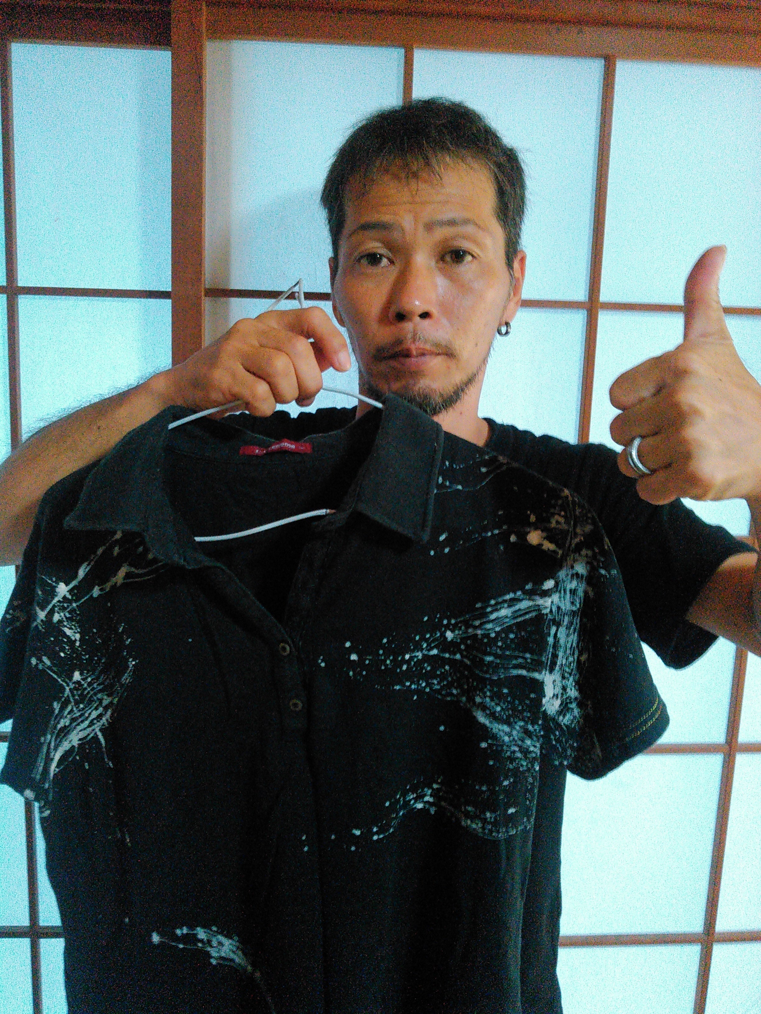 機械を使っての大量生産の物とは違いその時その時で同じ材料を用いても雰囲気は一枚一枚違うものが出来上がります。一点物のオリジナルTシャツをお手元にお届けいたします。