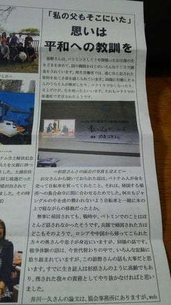 2017/06/08 08:424月29日にドーンセンターで開催された日本ベトナム友好協会大阪府連合会の講演会に講師として招かれ、その際に父と戦友だった杉原さんにお会いしました。杉原さんは最後の生き証人かと思われます。お元気な様子で良かったです。 もっと見る