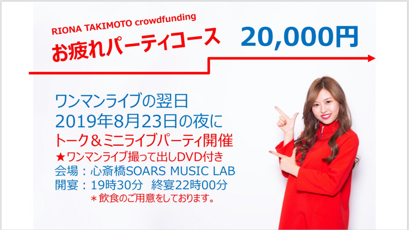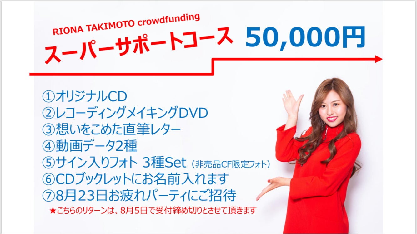 この度は、瀧本りおなクラウドファンディング「お疲れパーティーコース」または「スーパーサポートコース」にご支援を賜り、誠に有難うございました!