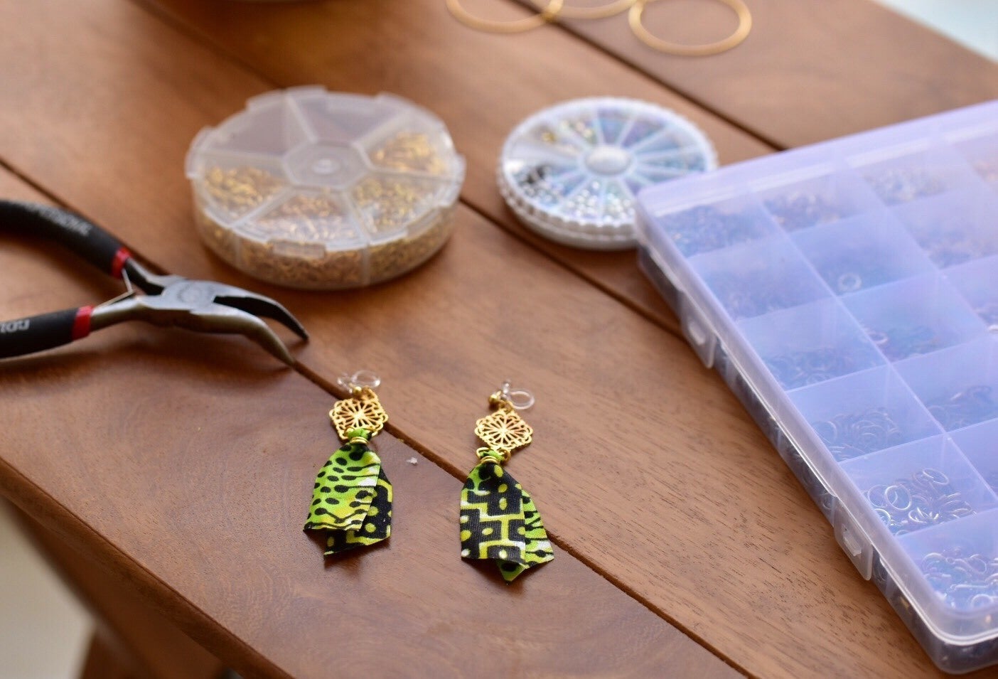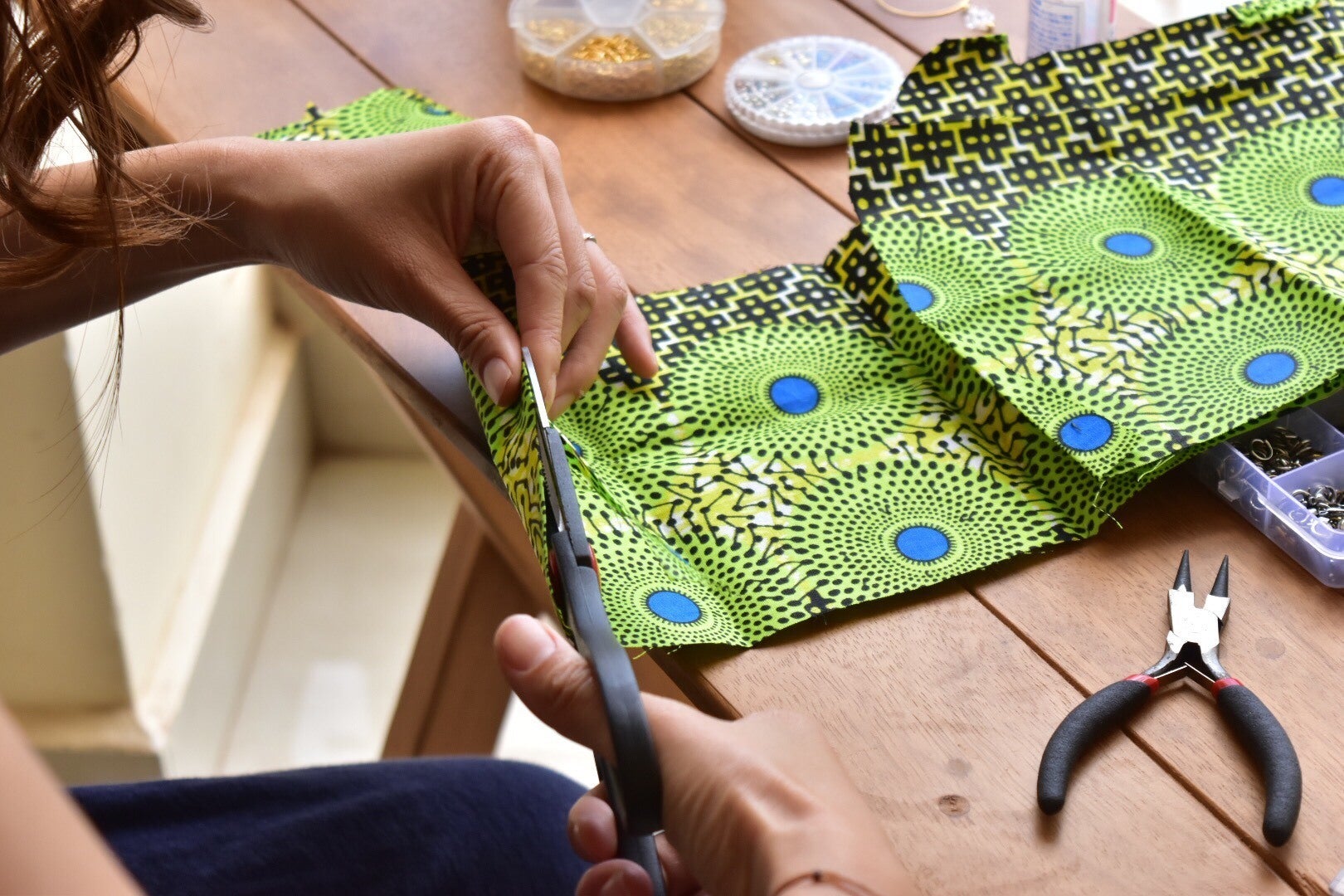 もともとアクセサリーが好きで、アフリカンプリントの布を使って何かできないかな、と考えていたそうです