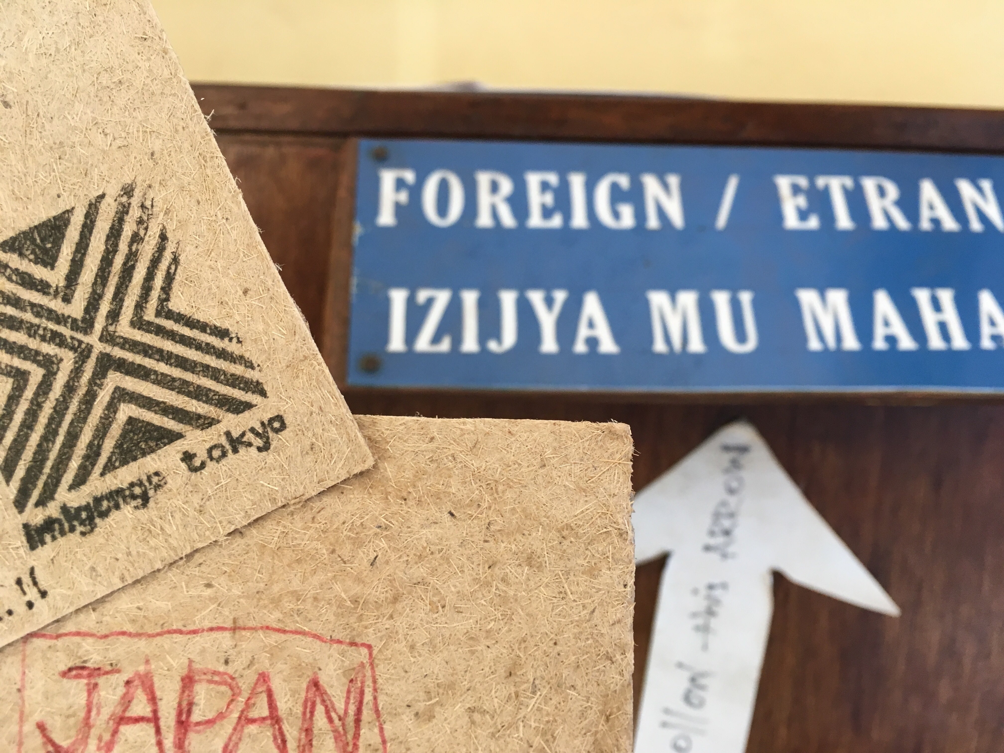 こんばんは。読んで下さりありがとうございます。加藤雅子です。リターンにて「ルワンダからお手紙をお届け」「2枚組イミゴンゴMサイズ&ルワンダからお手紙をお届け」をお選びいただいた皆様へ、先程投函をいたしました!ルワンダの首都キガリにある郵便局は黄色が目印郵便局を意味するiposita (イポシタ)は post ポストから来ていますバナナの樹皮から作ったバナナペーパーの葉書表面に繊維が残っています。木製のポストにぽとり。海を越えて遠く各地まで無事に届きますように。世界中にものが送れるってほんとすごいよなぁ。物流の存在に改めて感謝いたします。加藤雅子