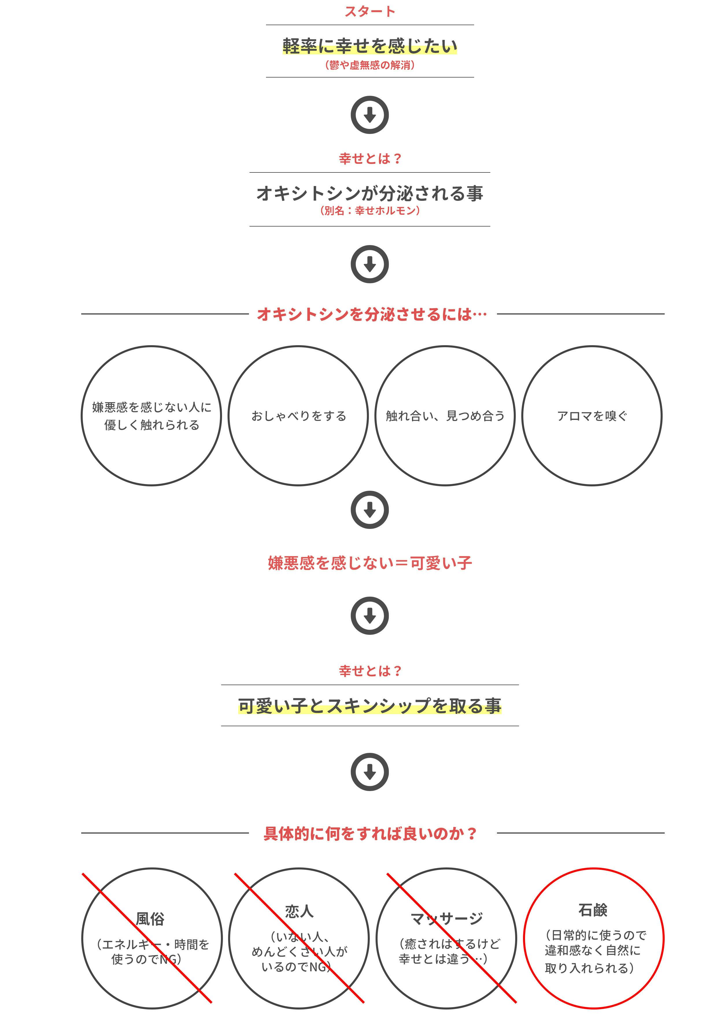 サービスを通して直接的に触れ合う事で「オキシトシン」が分泌されます。これは別名「愛情ホルモン・絆ホルモン」などとも呼ばれ幸せな気持ちにしてくれる成分です。
