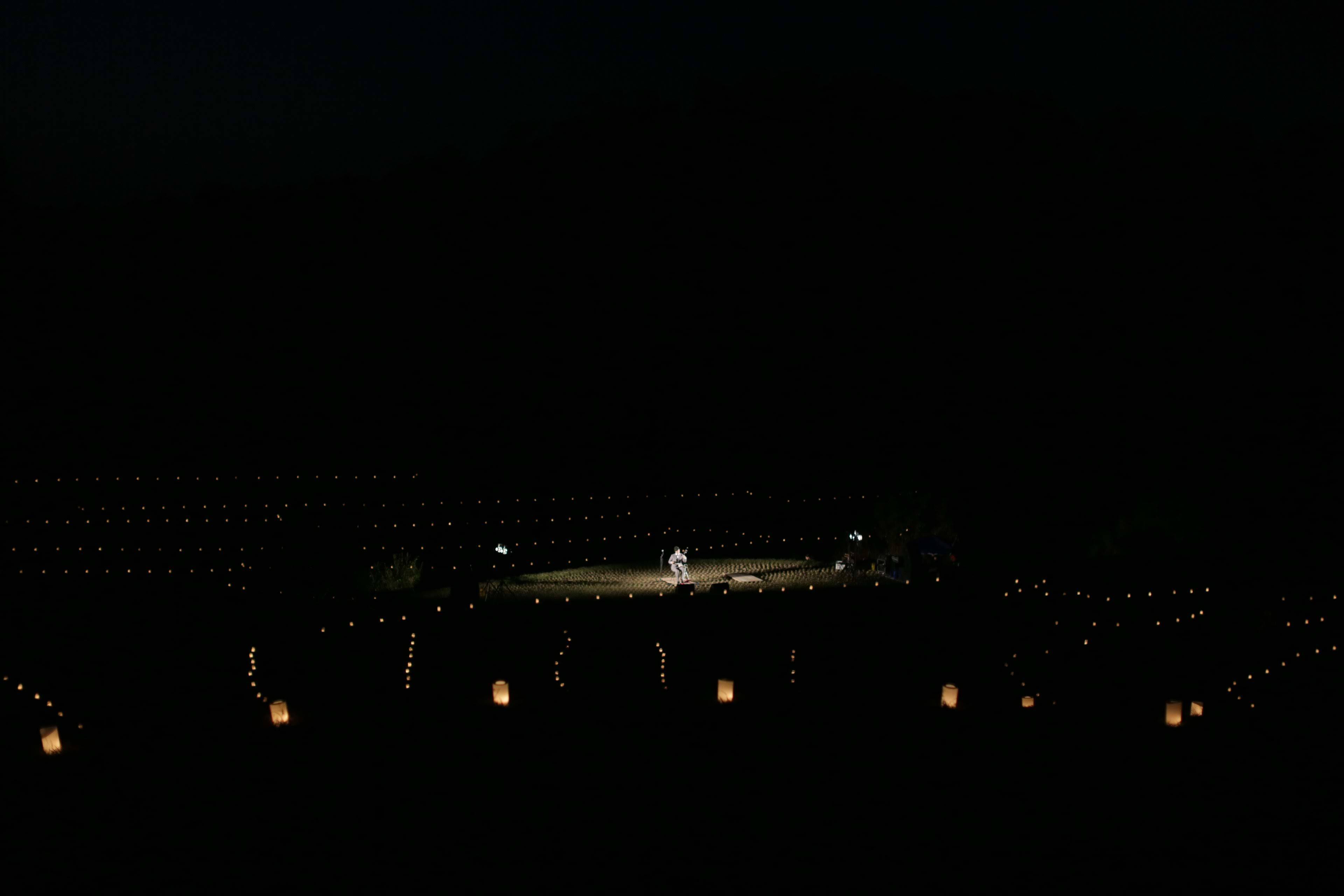 金剛山の里 棚田夢灯り×アートフェスティバル2019は、「創造しよう、再自然」をテーマに、数千の灯篭が散りばめられた地上の星空で、自然と音と光が織りなす神秘的な空間を創ります。このイベントを参加型のイベントとし、表現の場・若い人材発掘の場であると考えています。音楽に関わらず「私であれば、自然をこんな風に表現できる」、「企画を一緒に考えたい」という人達がいれば、実行委員会と共にイベントの実現に携わっていただけます。こうして、金剛山の里 棚田夢灯り×アートフェスティバル(千早赤阪村の自然)を通じて、地域や自然への関心、イベントまたは地域の活性化活動、移住・定住のきっかけ等、千早赤阪村への関係人口の増加を図り、「田舎を再プロデュース」致します。
