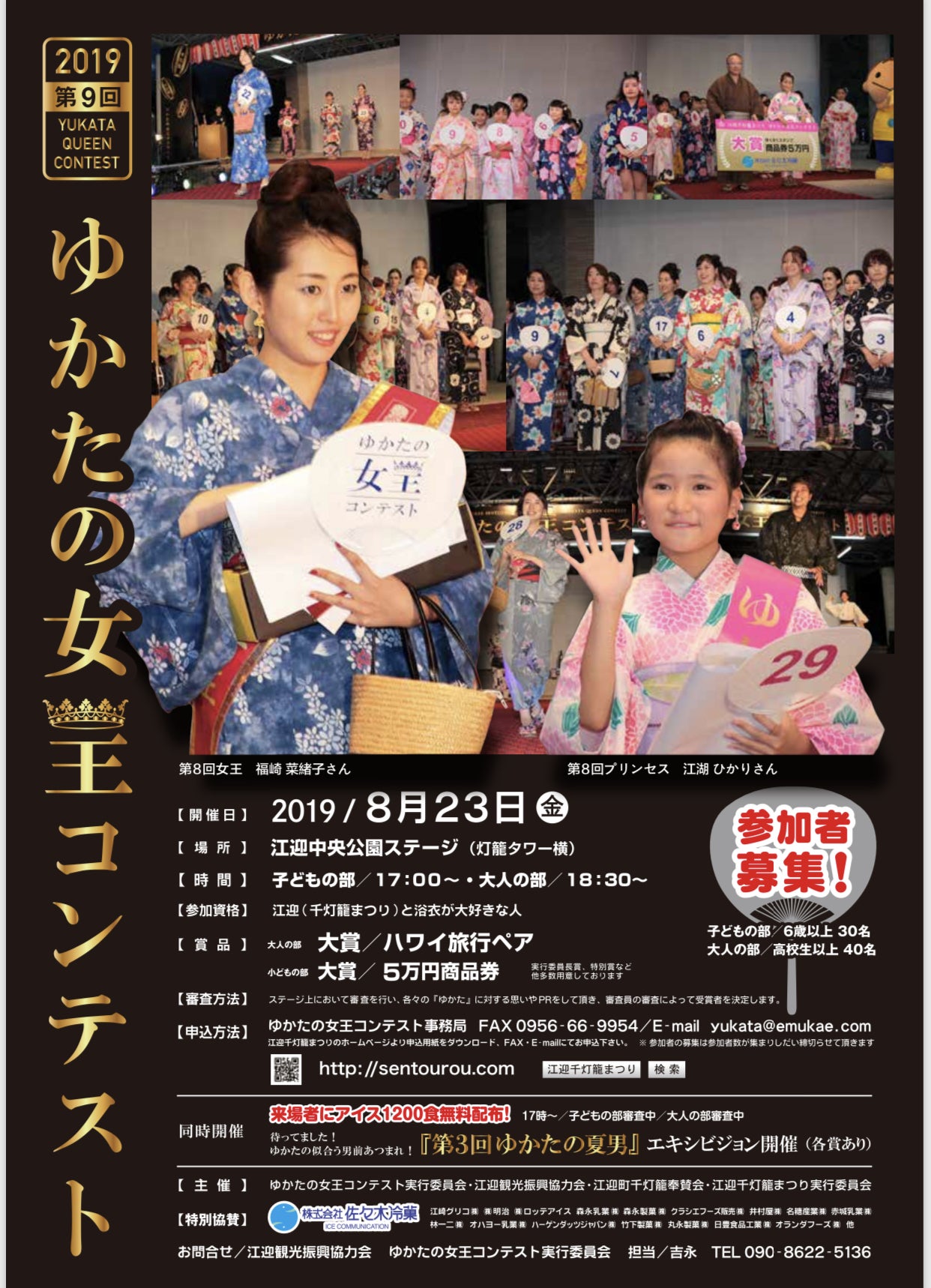 8月23日(金曜日)に佐世保市江迎町 千灯籠祭り初日に第9回ゆかたの女王コンテストを開催致します。
