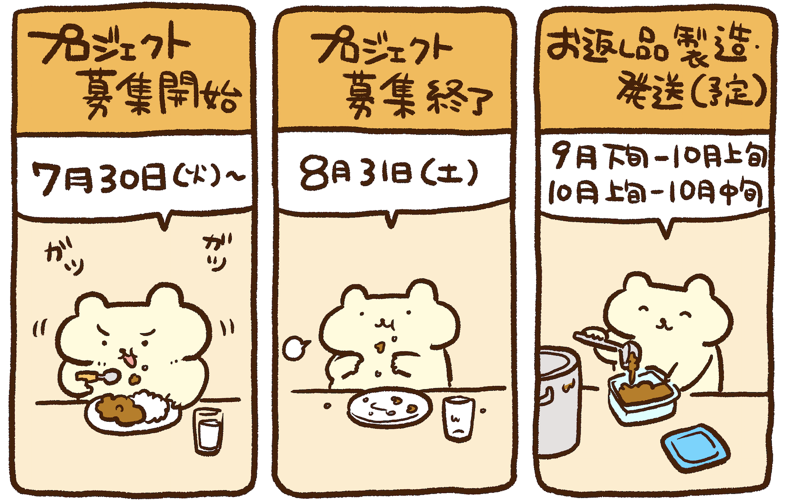 A:目標金額の60万円を達成しなかった場合も、申し込んでくださった全てのファンのみなさんに漏れなくお返し品を提供します〜!